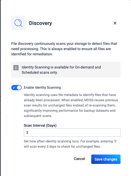 To maintain security, Identity Scanning includes a rescan interval. Even files that haven't changed get rescanned after the time period you configure. This ensures nothing slips through the cracks.