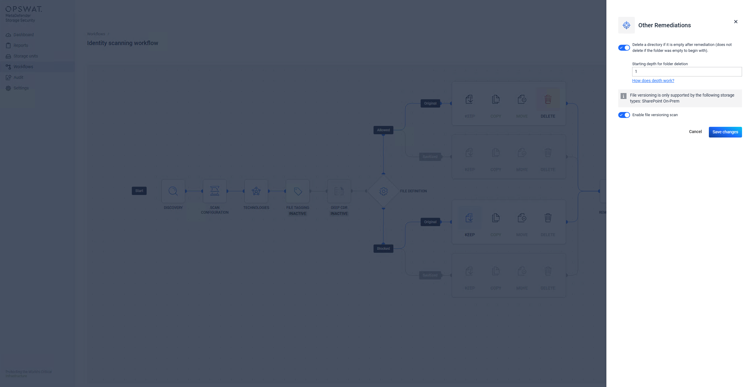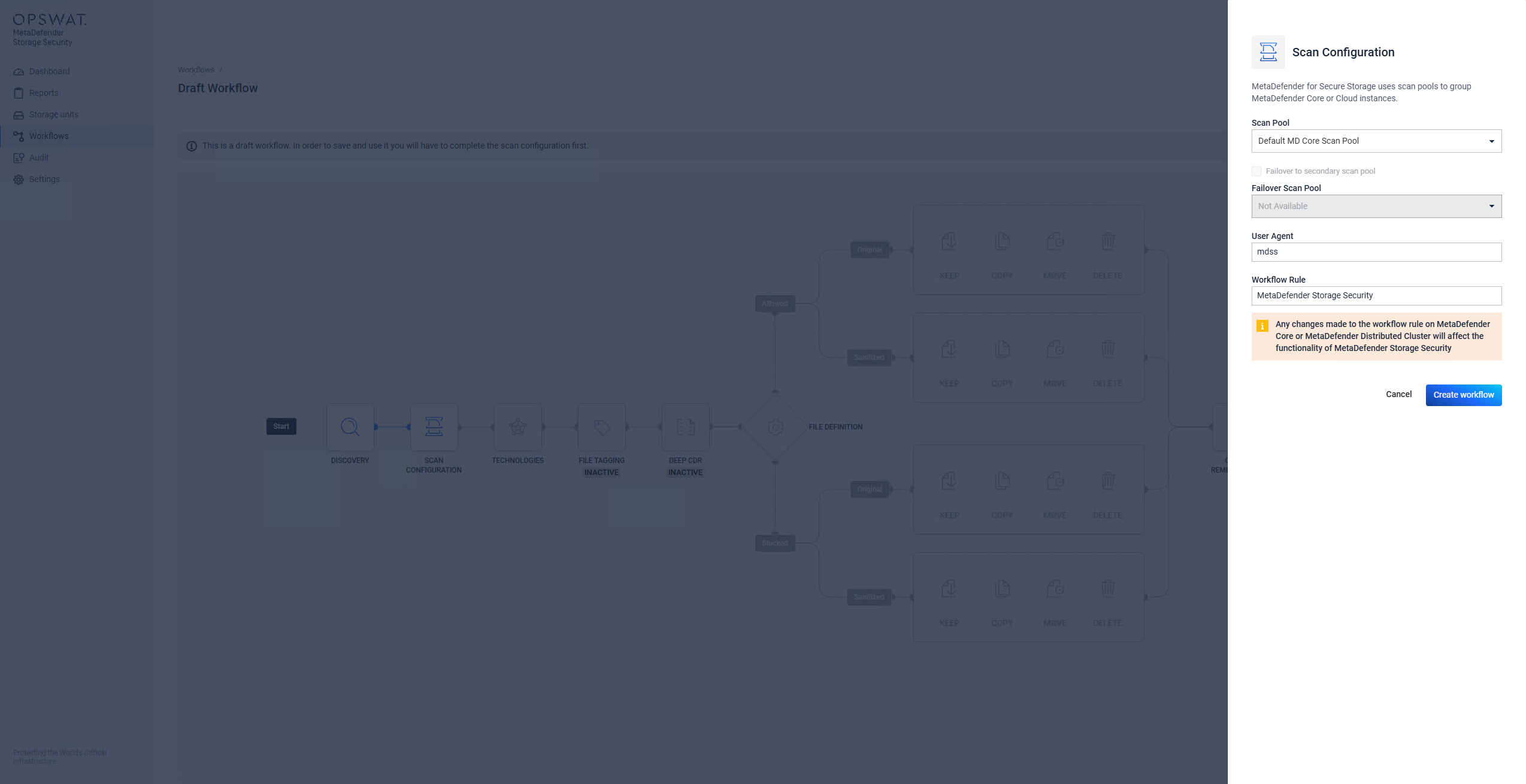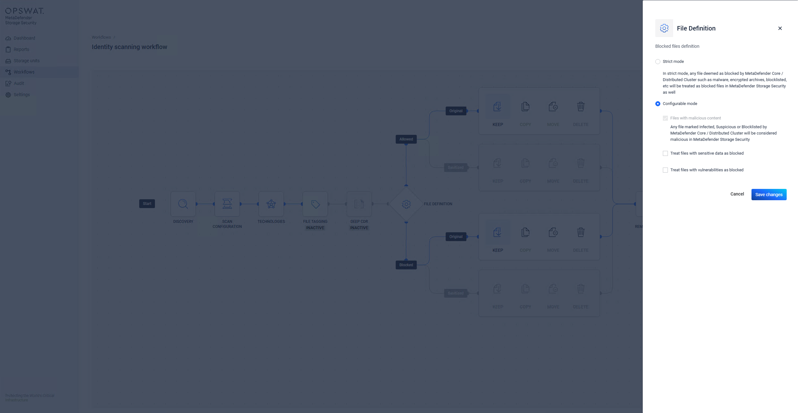 MetaDefender Storage Security supports two types of workflows that differ in their scanning behavior: