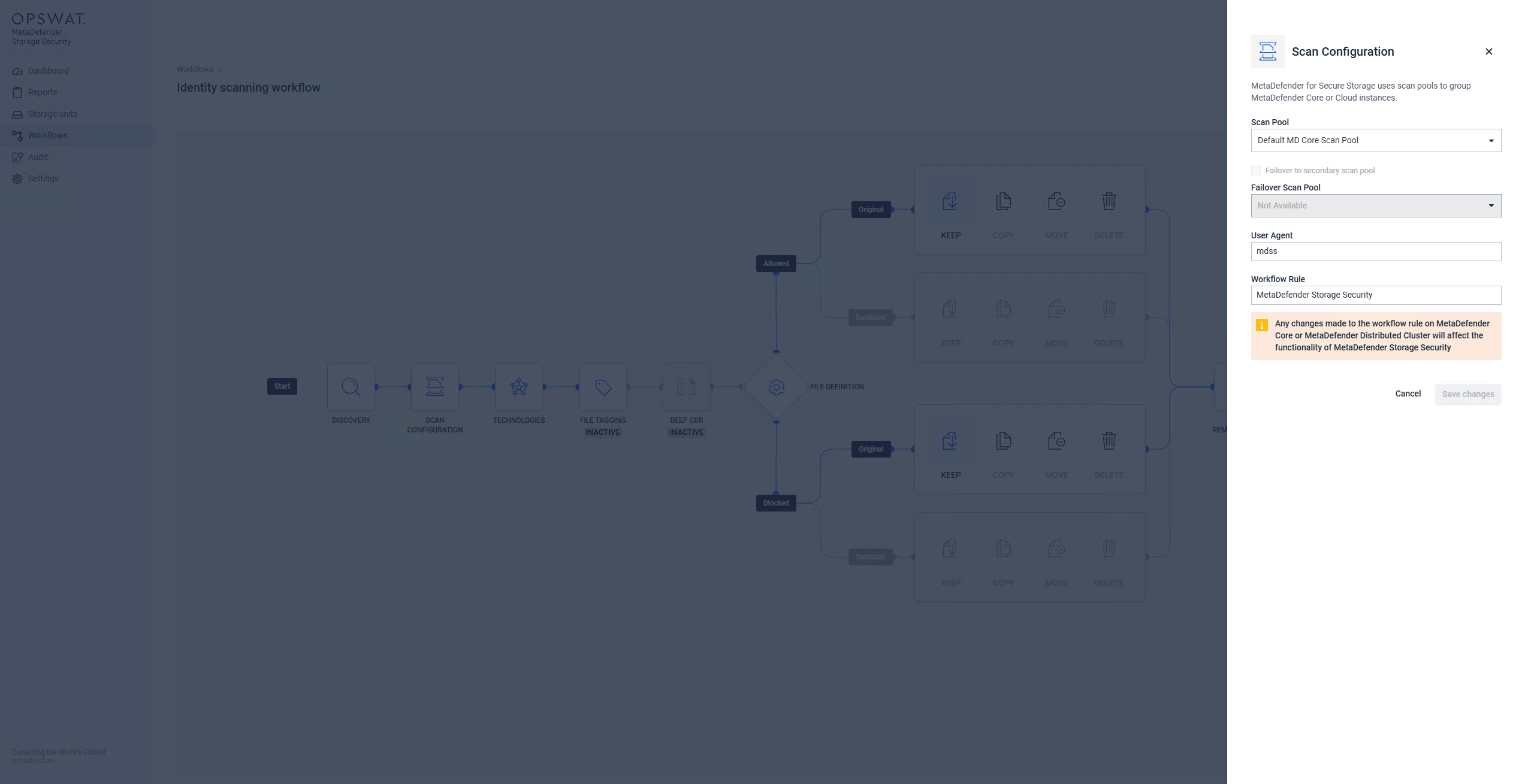 MetaDefender Storage Security employs scan configurations to offer a versatile method for initiating scanning processes using various workflow rules from either MetaDefender Core or MetaDefender Cloud.