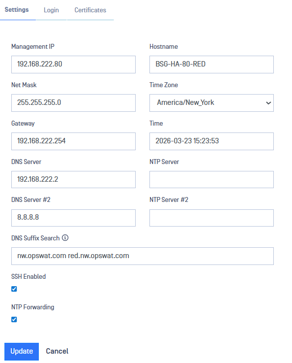 - Select Update to save configuration