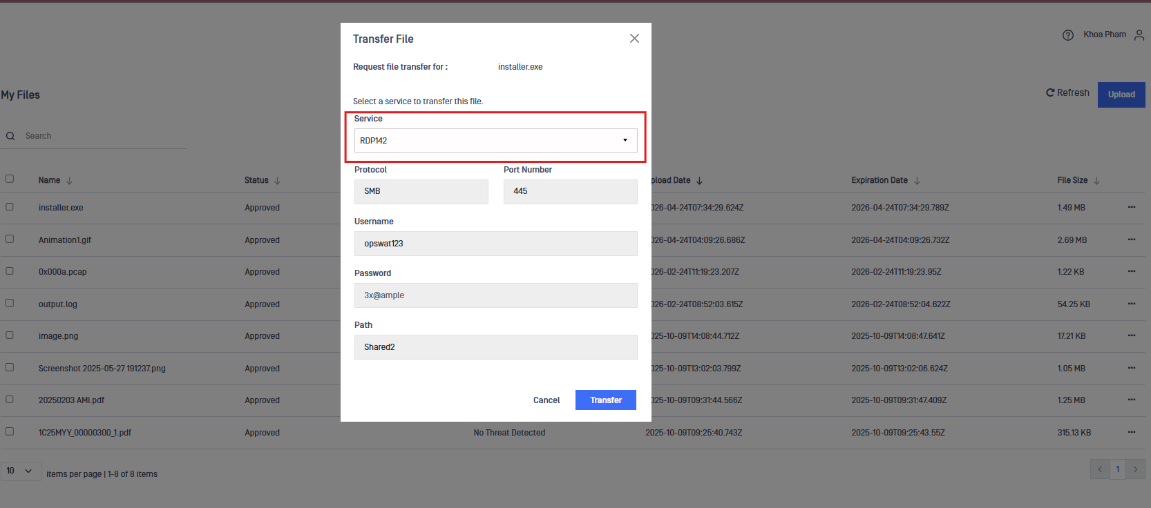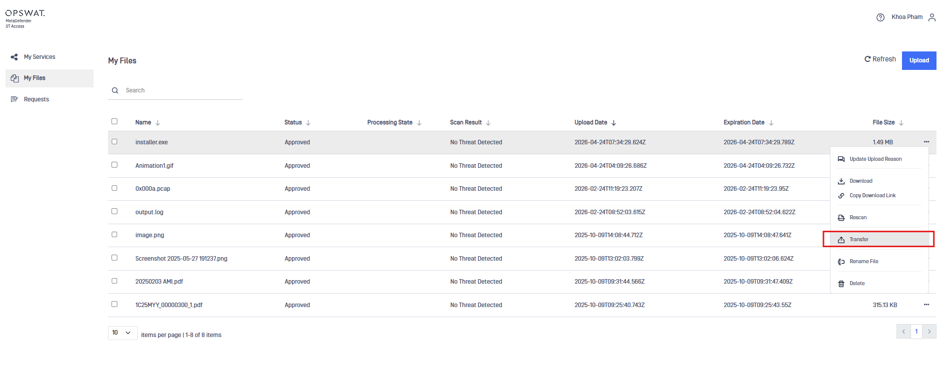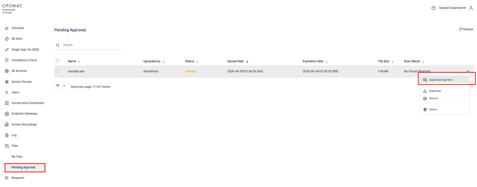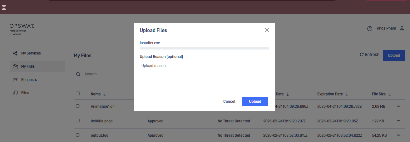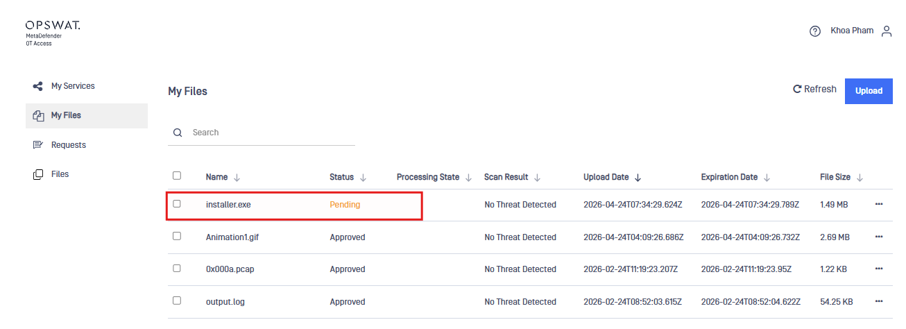 With this integration, files are scanned and approved before being securely transferred to remote hosts through OT Access, ensuring controlled and compliant file delivery.
