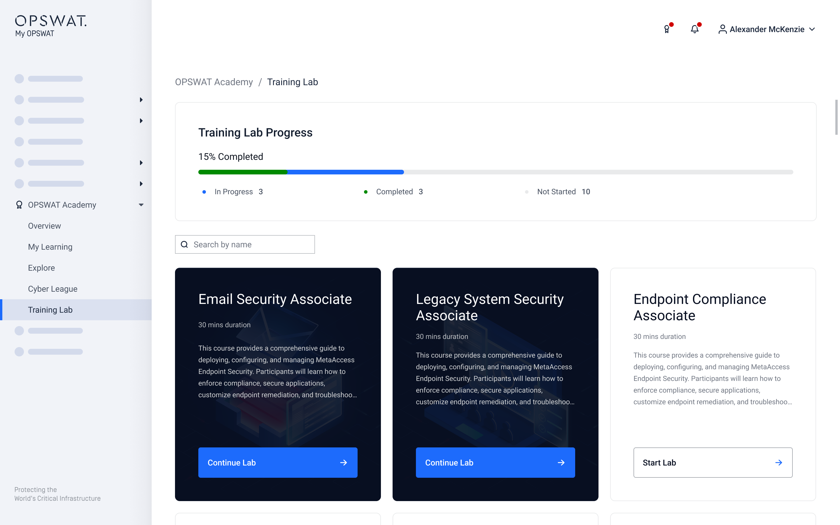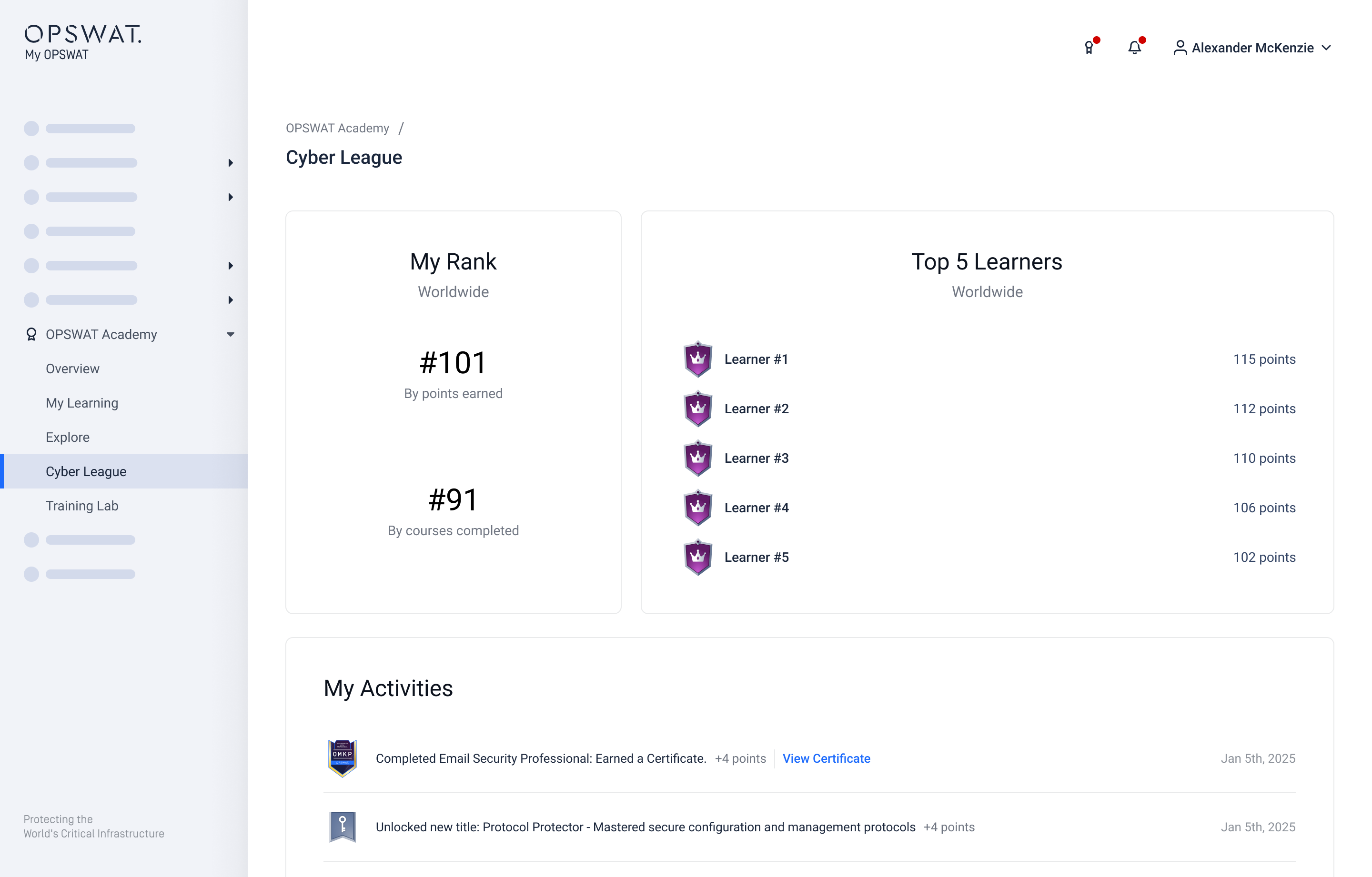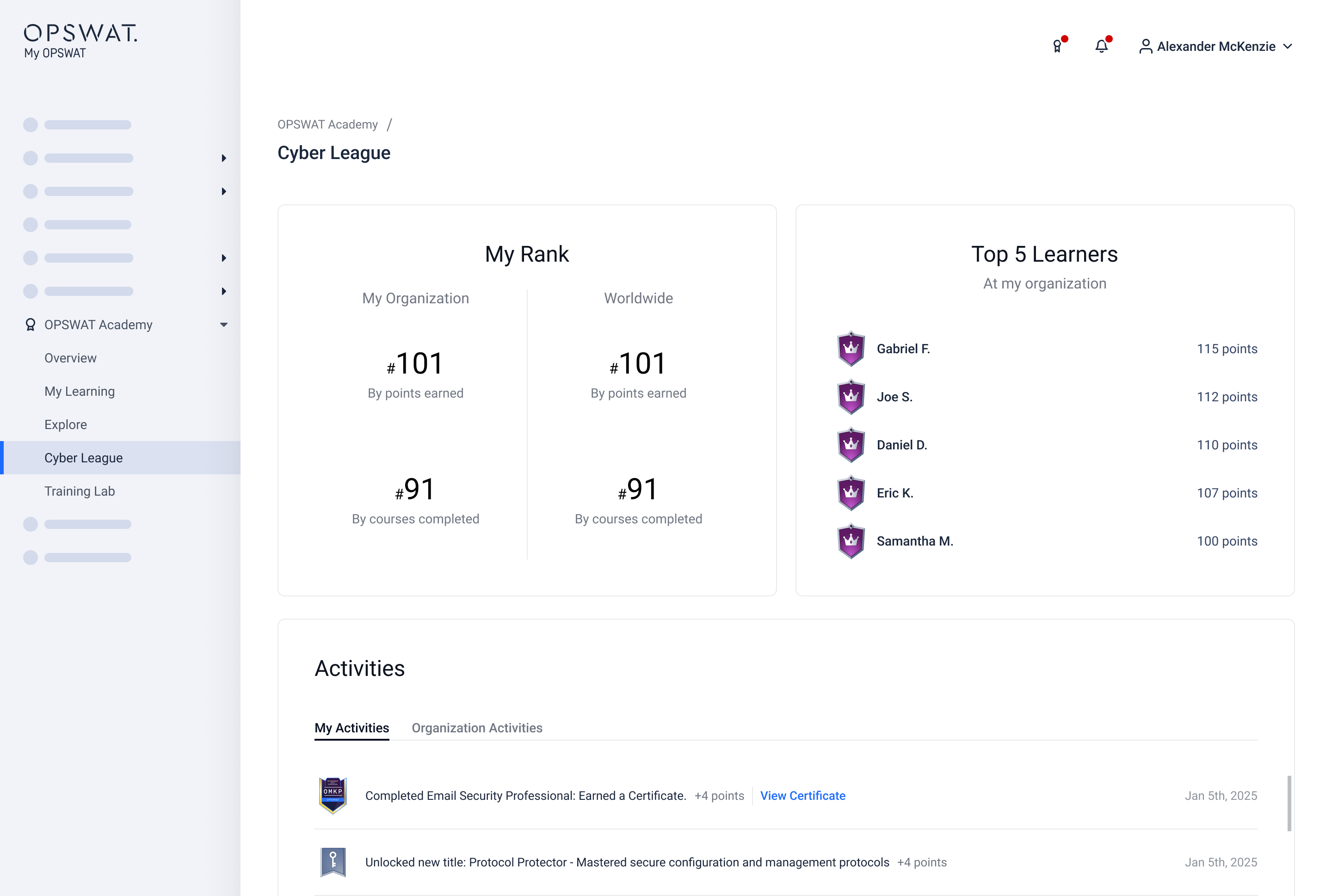 The OPSWAT Academy page is your central hub for all OPSWAT Academy training activities. Here, you can: