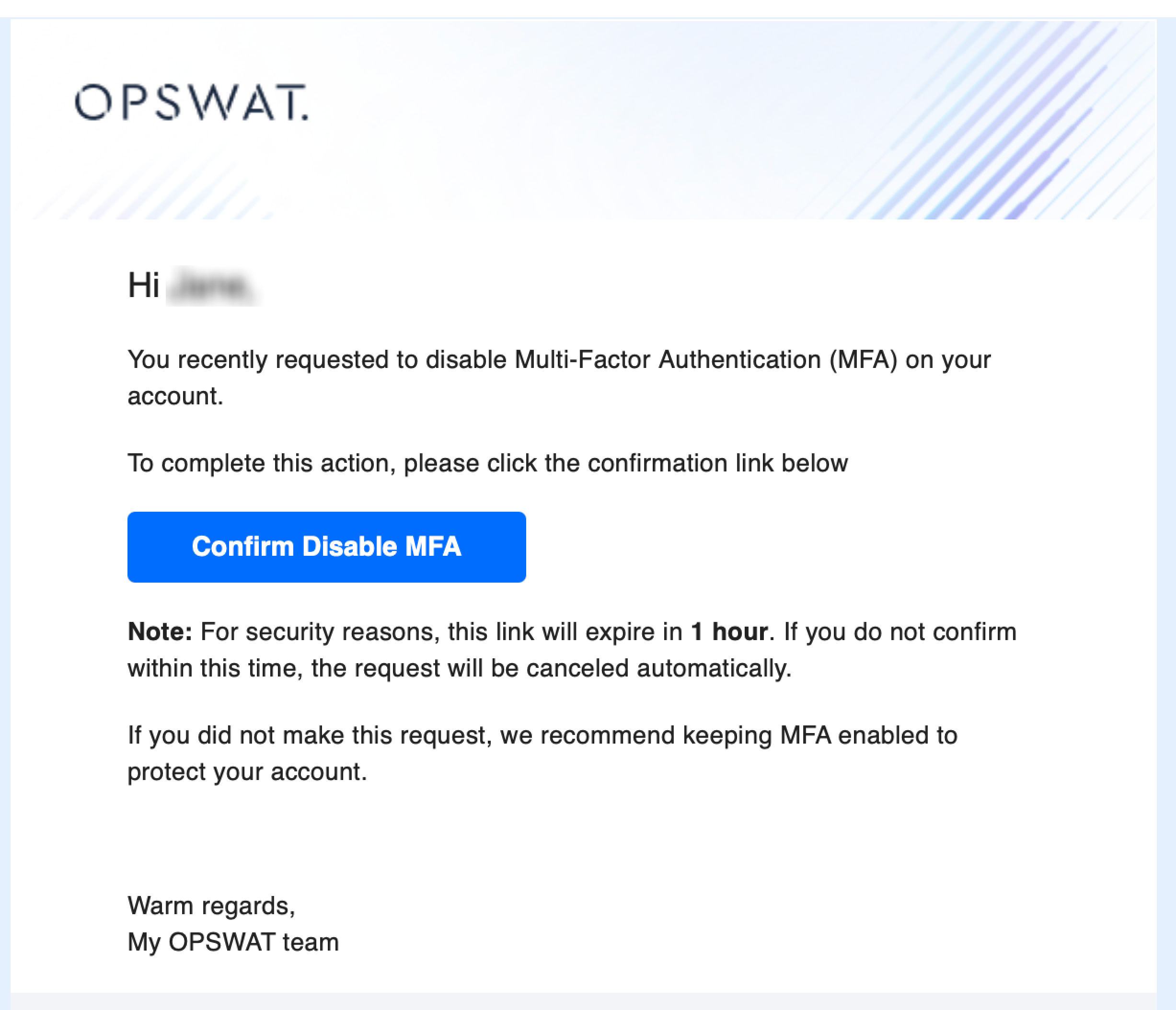 - A confirmation email will be sent to your registered email address. Open the email and follow the instructions to confirm and complete the MFA disable process.