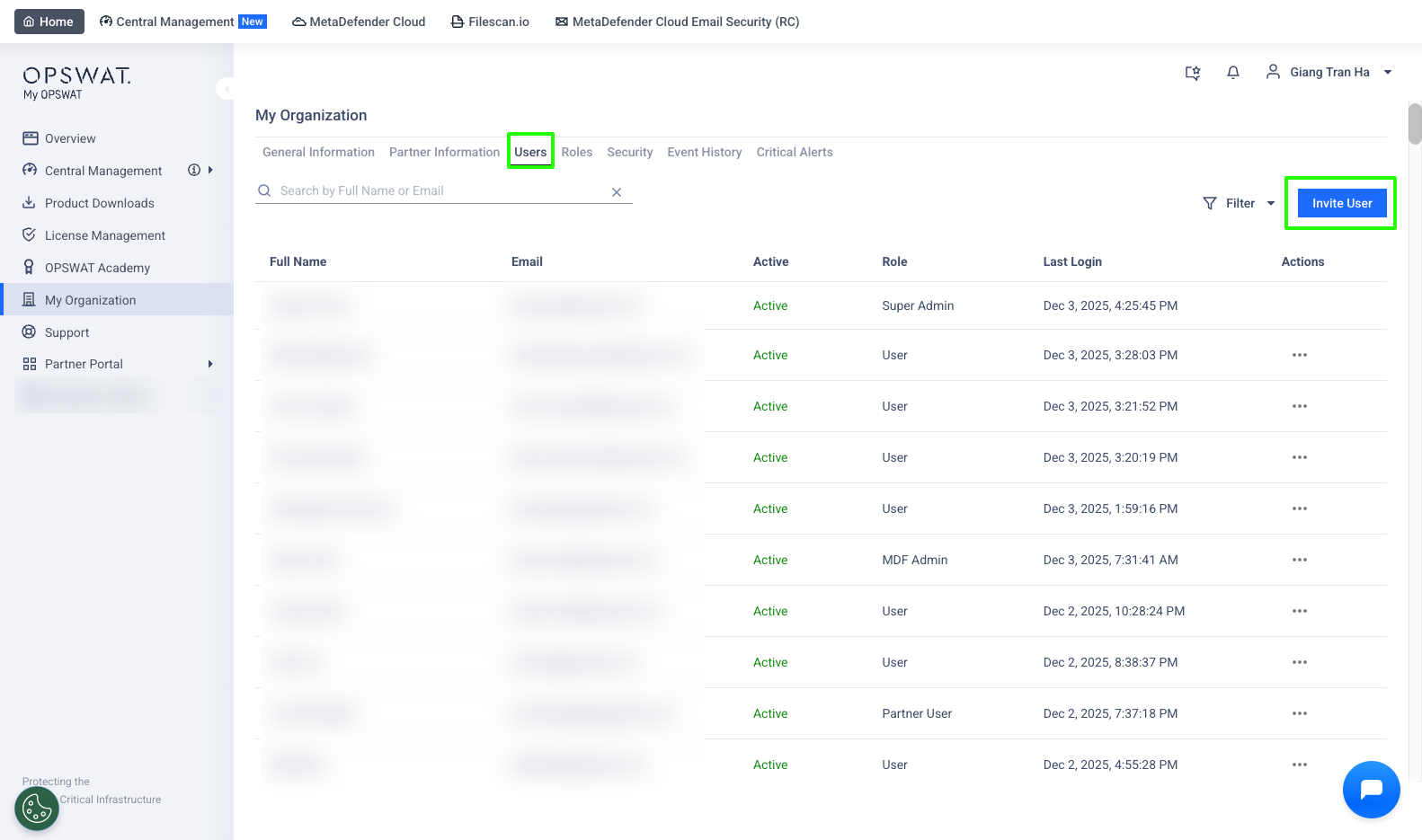 Invited users will receive an email with instructions to get started with My OPSWAT Portal.