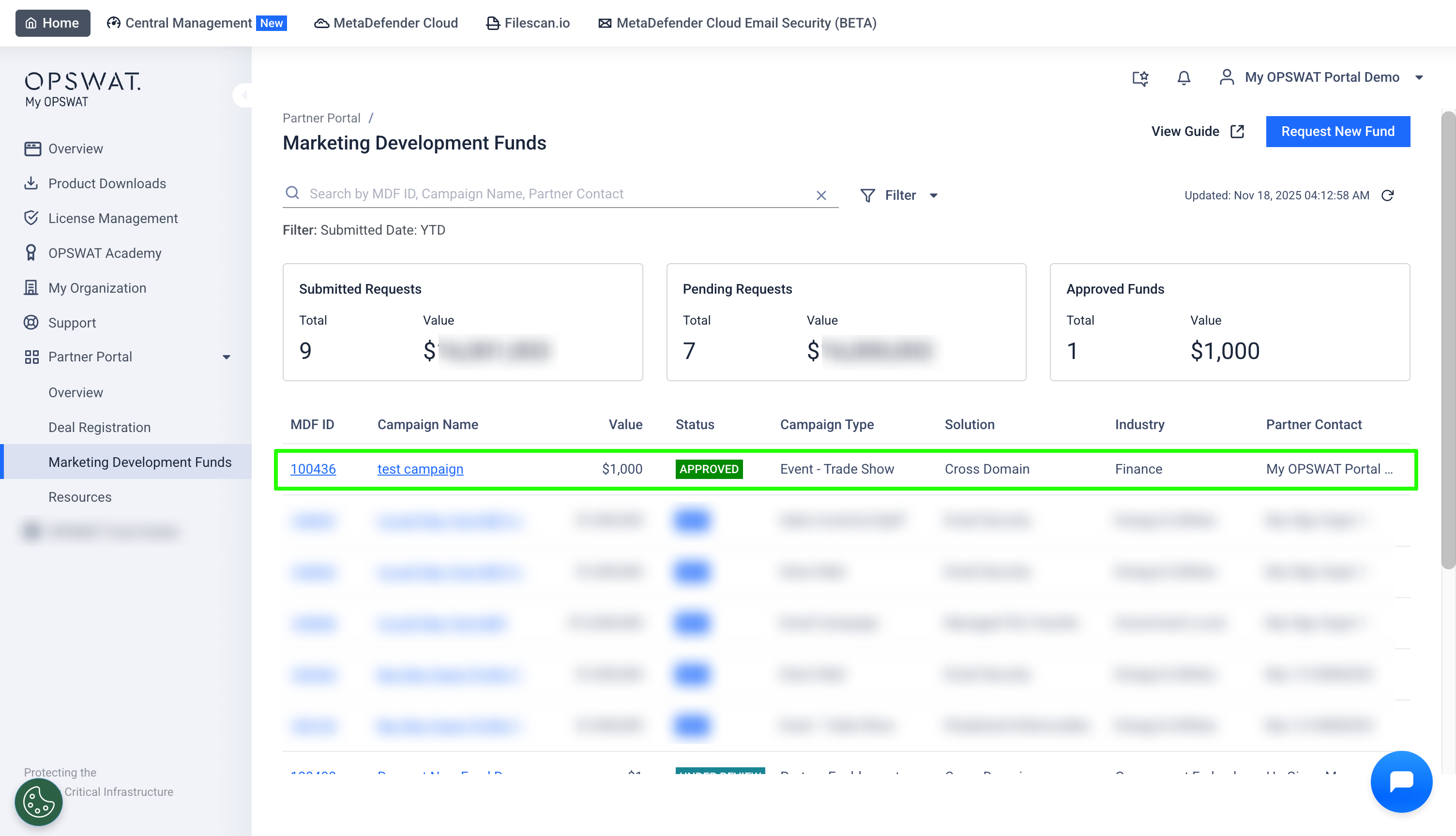 - Navigate to Partner Portal > Marketing Development Funds from the left menu