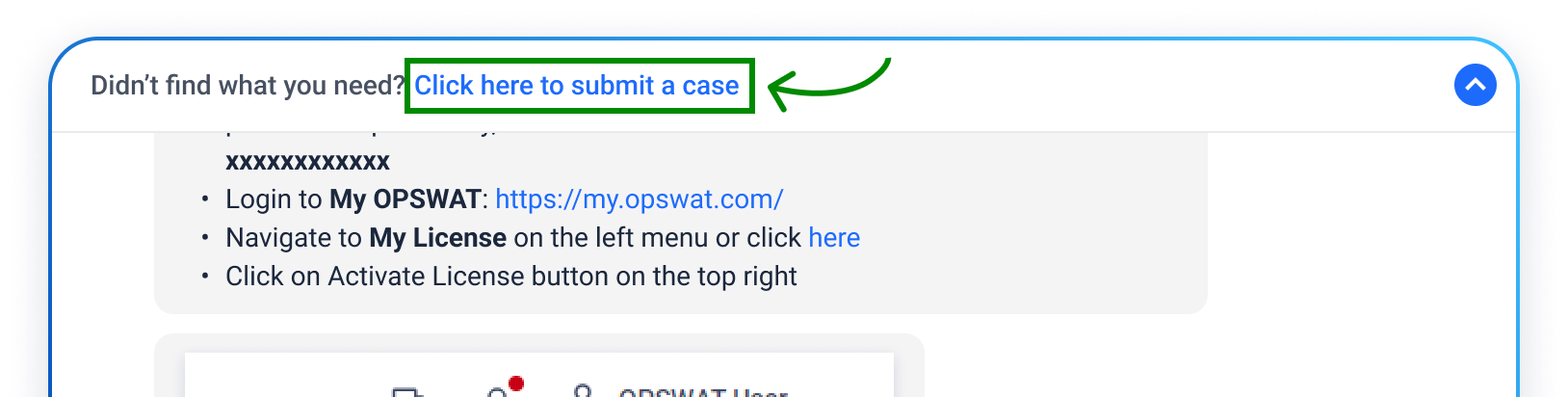 Path: My OPSWAT Portal → Support (Left menu) → Submit a Case