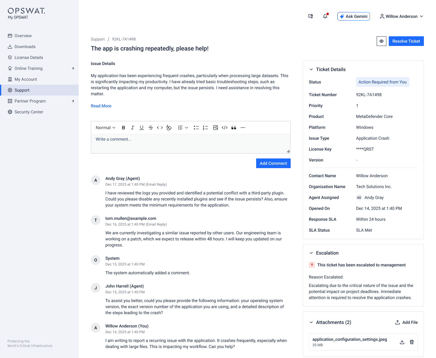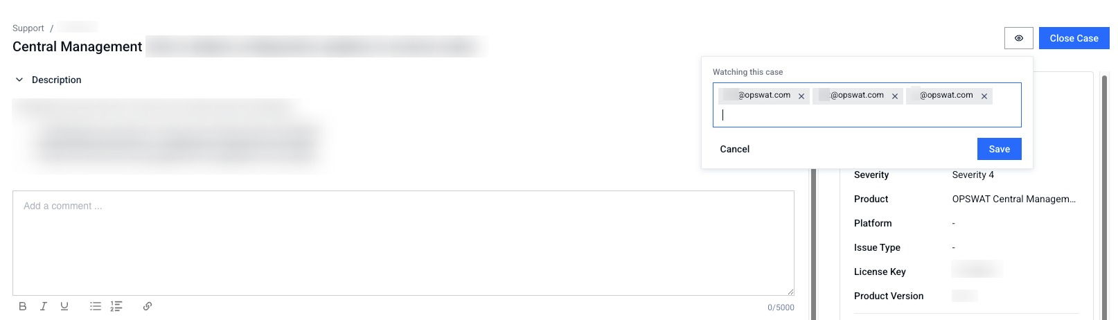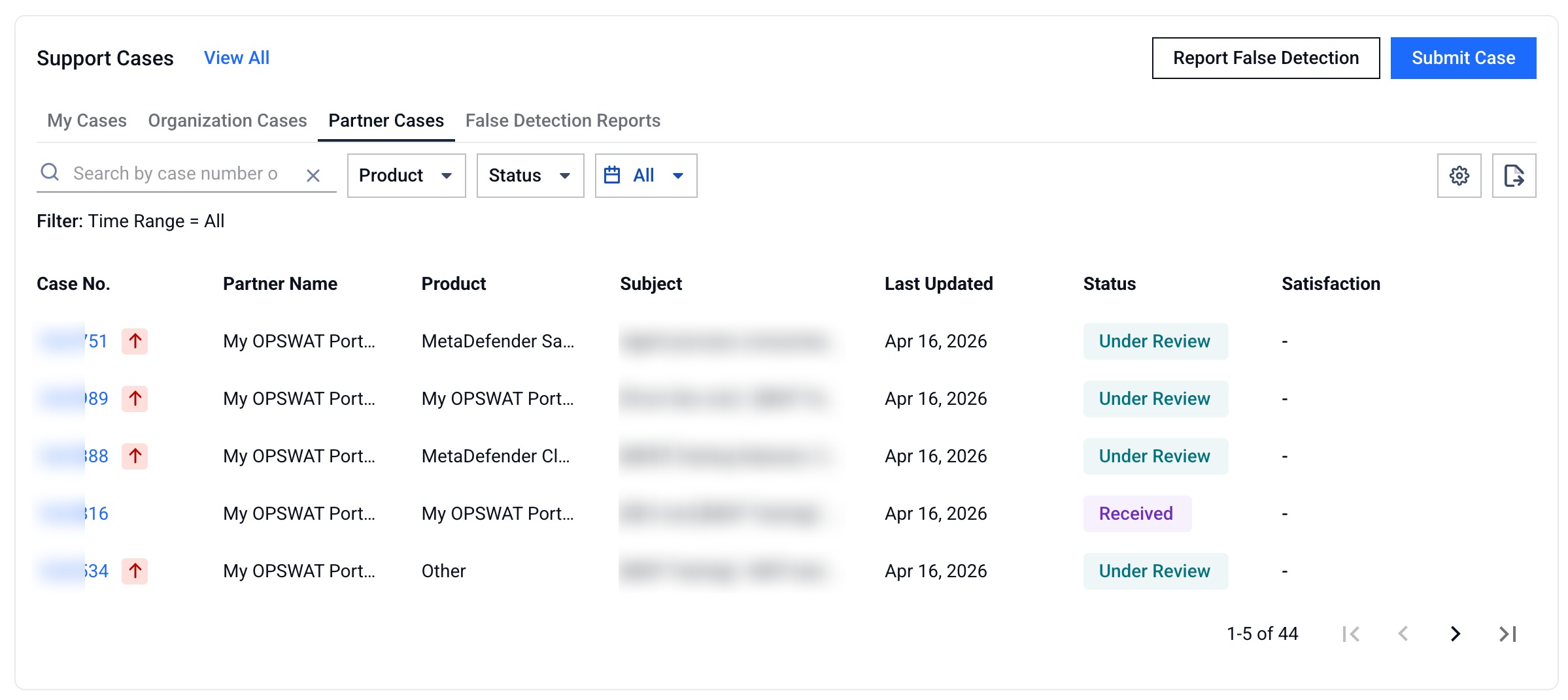 Administrators can manage visibility across organization, partner, and customer cases without requiring OPSWAT support involvement