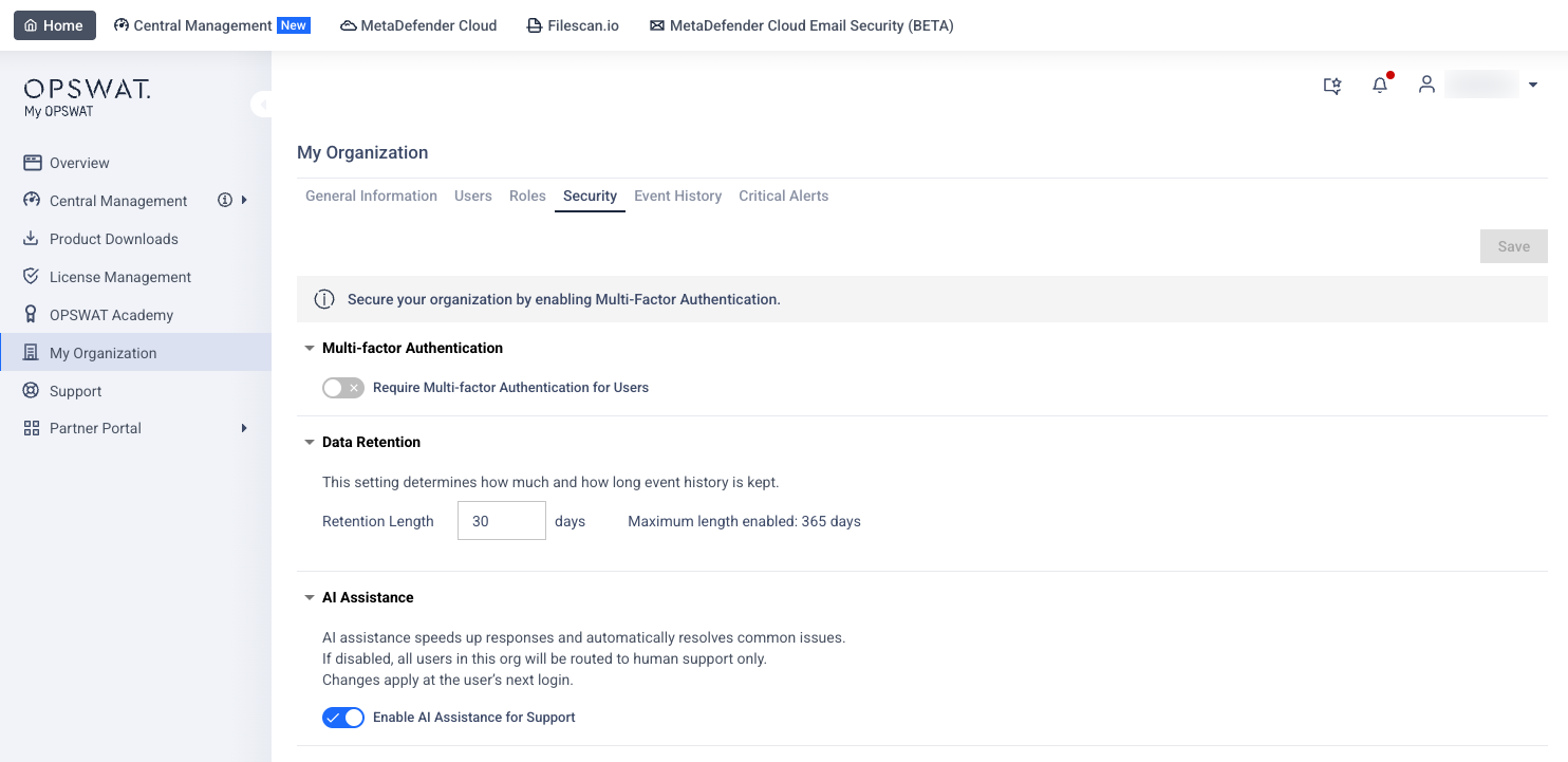 • When disabled, all support requests are routed directly to OPSWAT Support agents.