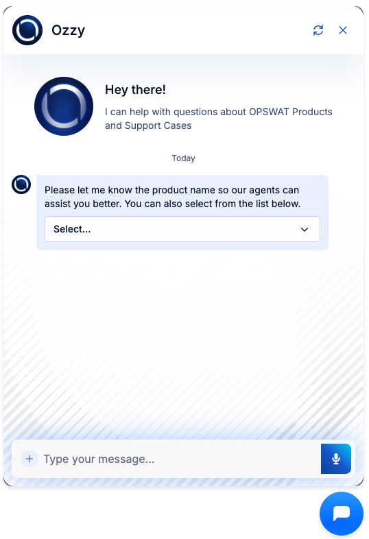 You can also connect with an OPSWAT support agent in real time, with a case automatically created in the ticketing system.