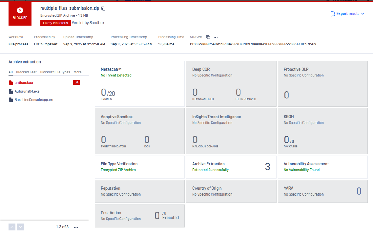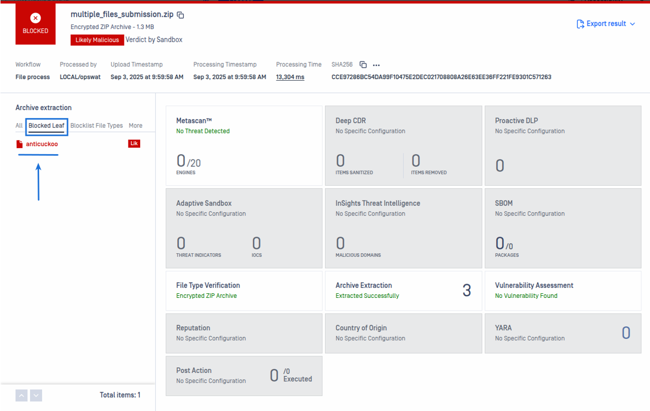 - False positives: In MetaDefender Core, enable the Blocked leaf option. This view shows only the files that require action in a false positive case.