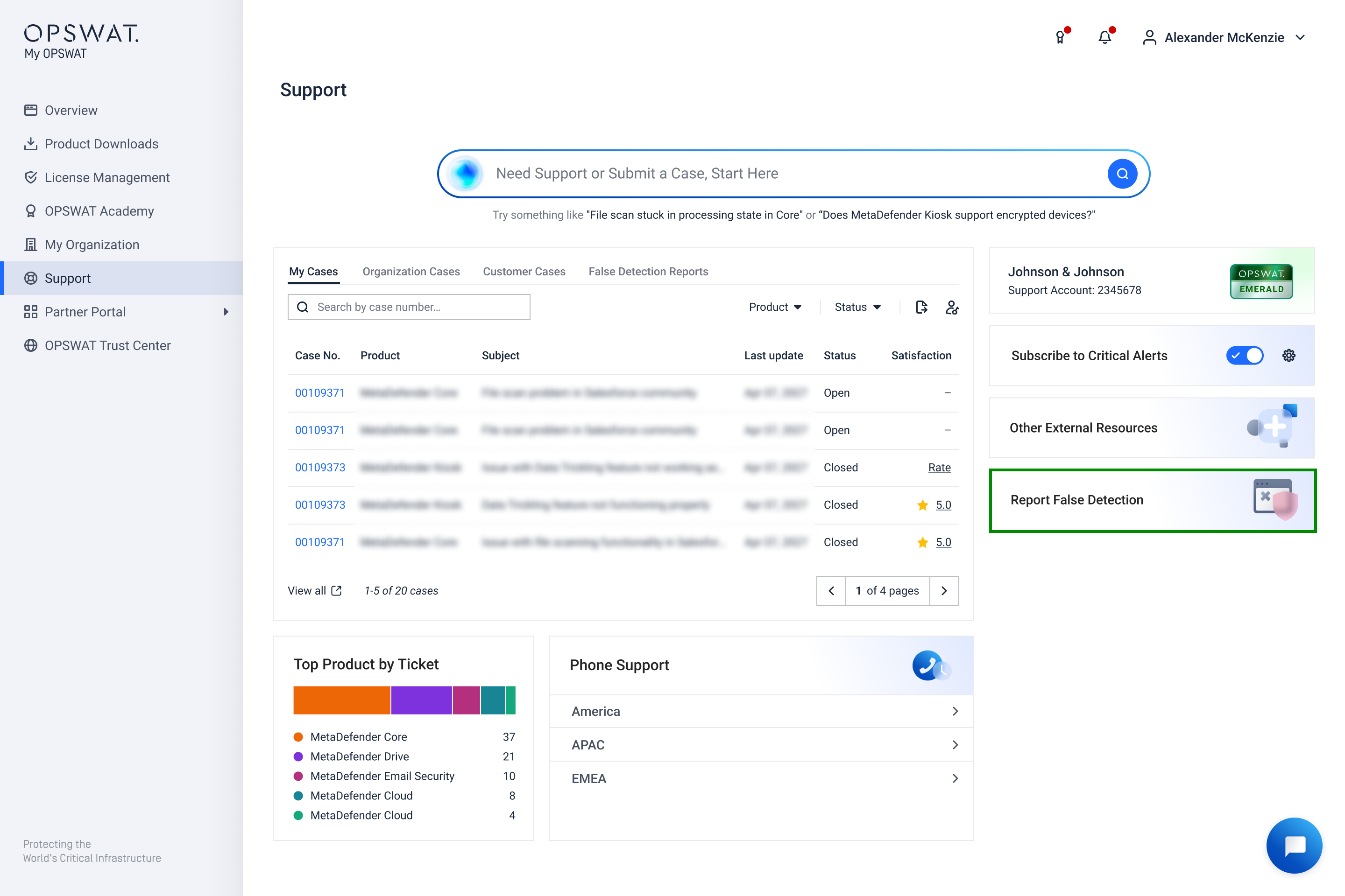 The Report False Detection feature allows users to report files they feel have been wrongly flagged as malicious by an OPSWAT Product. OPSWAT's expert analyst team will review these submissions for false positives/negatives and update our Reputation Engine database as needed.