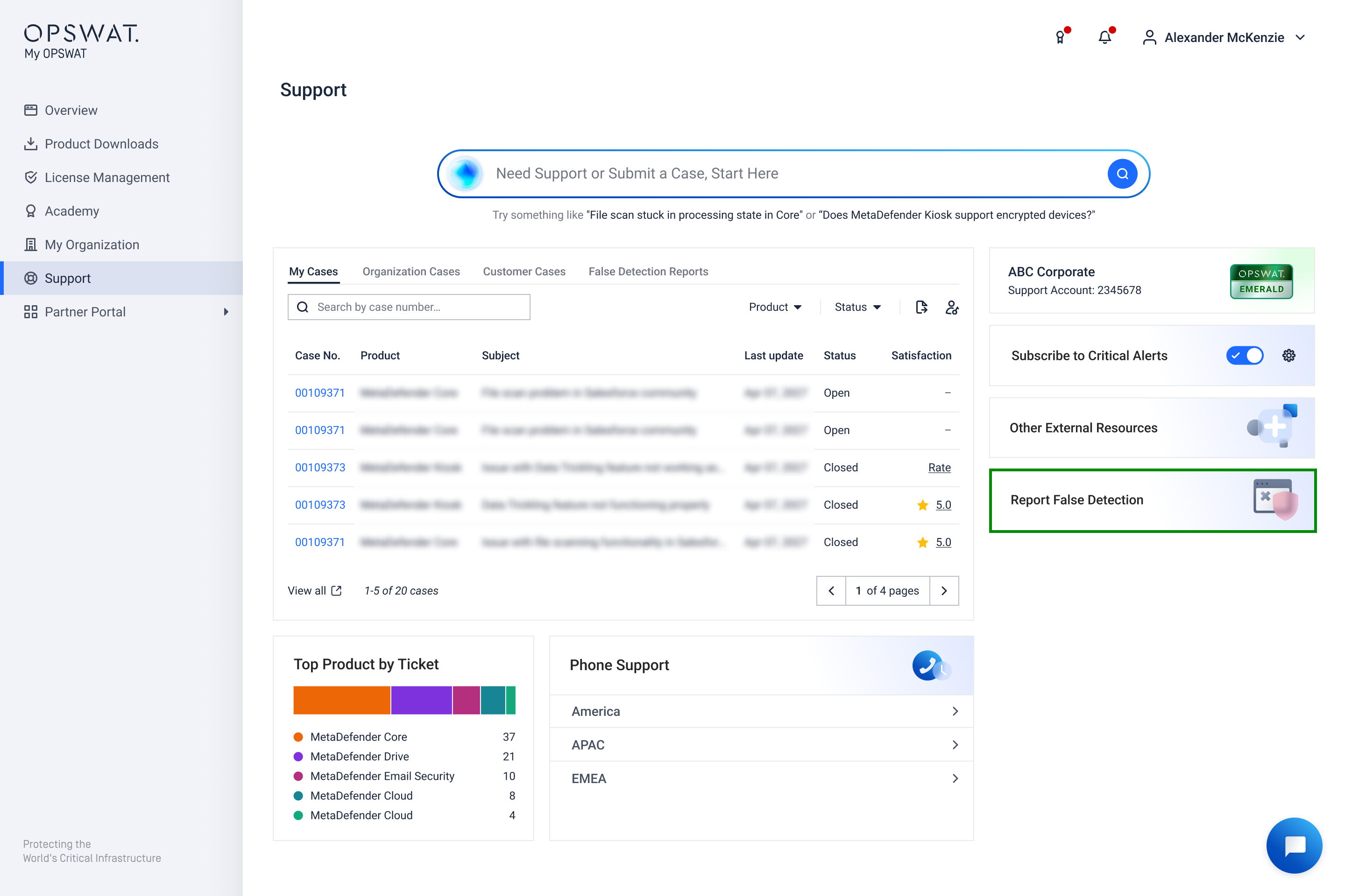 - Filter cases by Status (Open/Closed/Waiting on me/Waiting on OPSWAT)