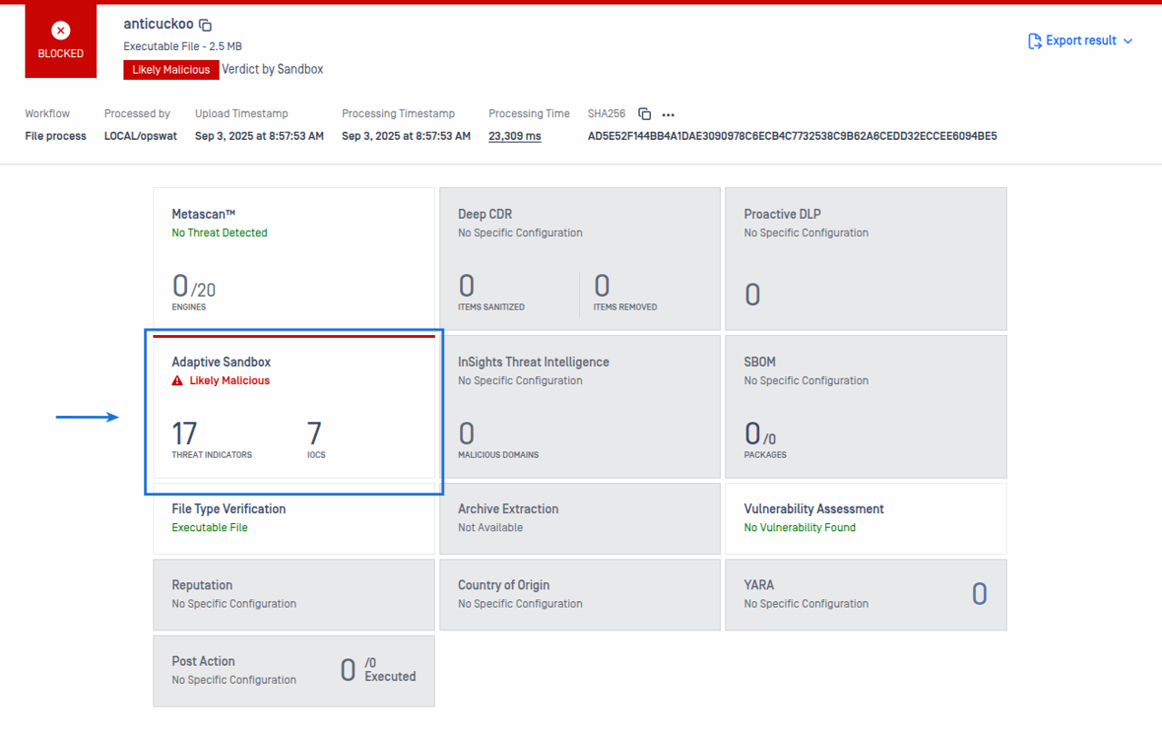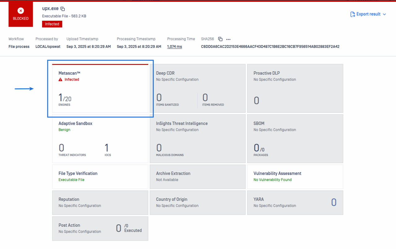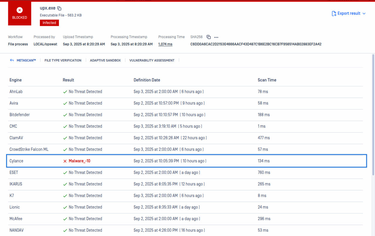 Sandbox: MetaDefender Sandbox detonates and analyzes files in a controlled environment, extracting IOCs and performing dynamic analysis to identify threats. Learn more about this technology here.
