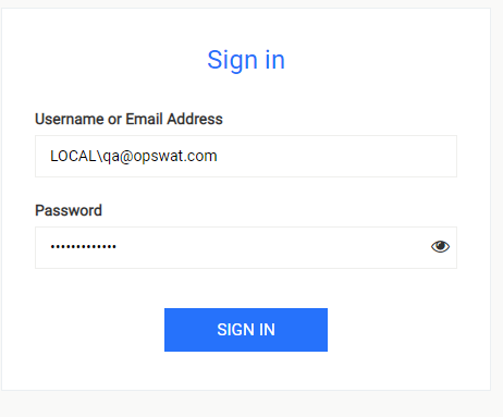 LOCAL directory users can log in using either of the formats displayed in the screenshots below, depending on the OPSWAT Central Management version via which each user was created.