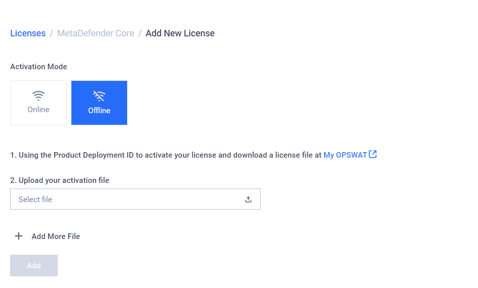 Please note that only My OPSWAT On-premises can use the offline activation mode.
