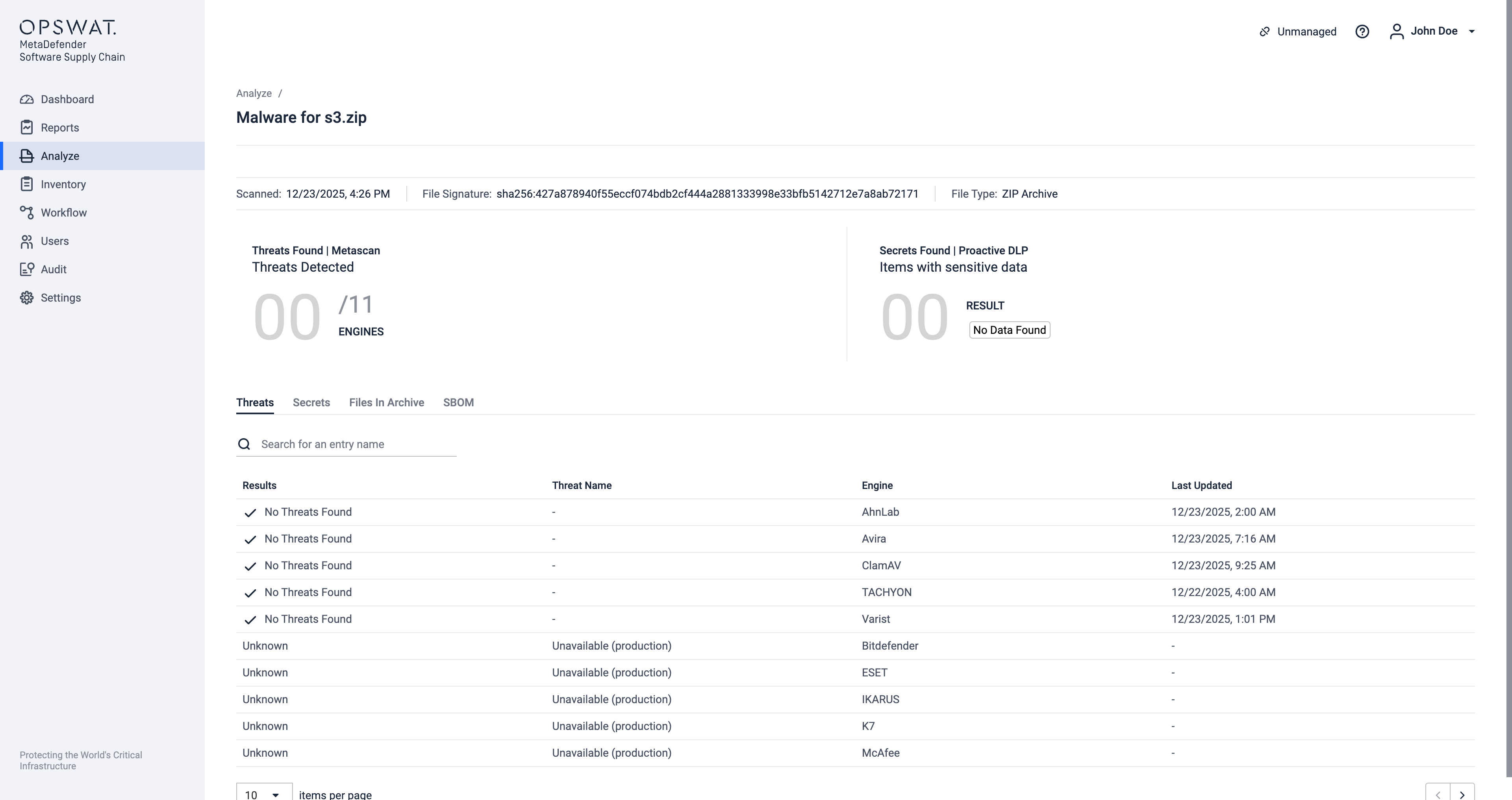 After scanning the selected file(s), you can view the results by clicking on the corresponding table row.