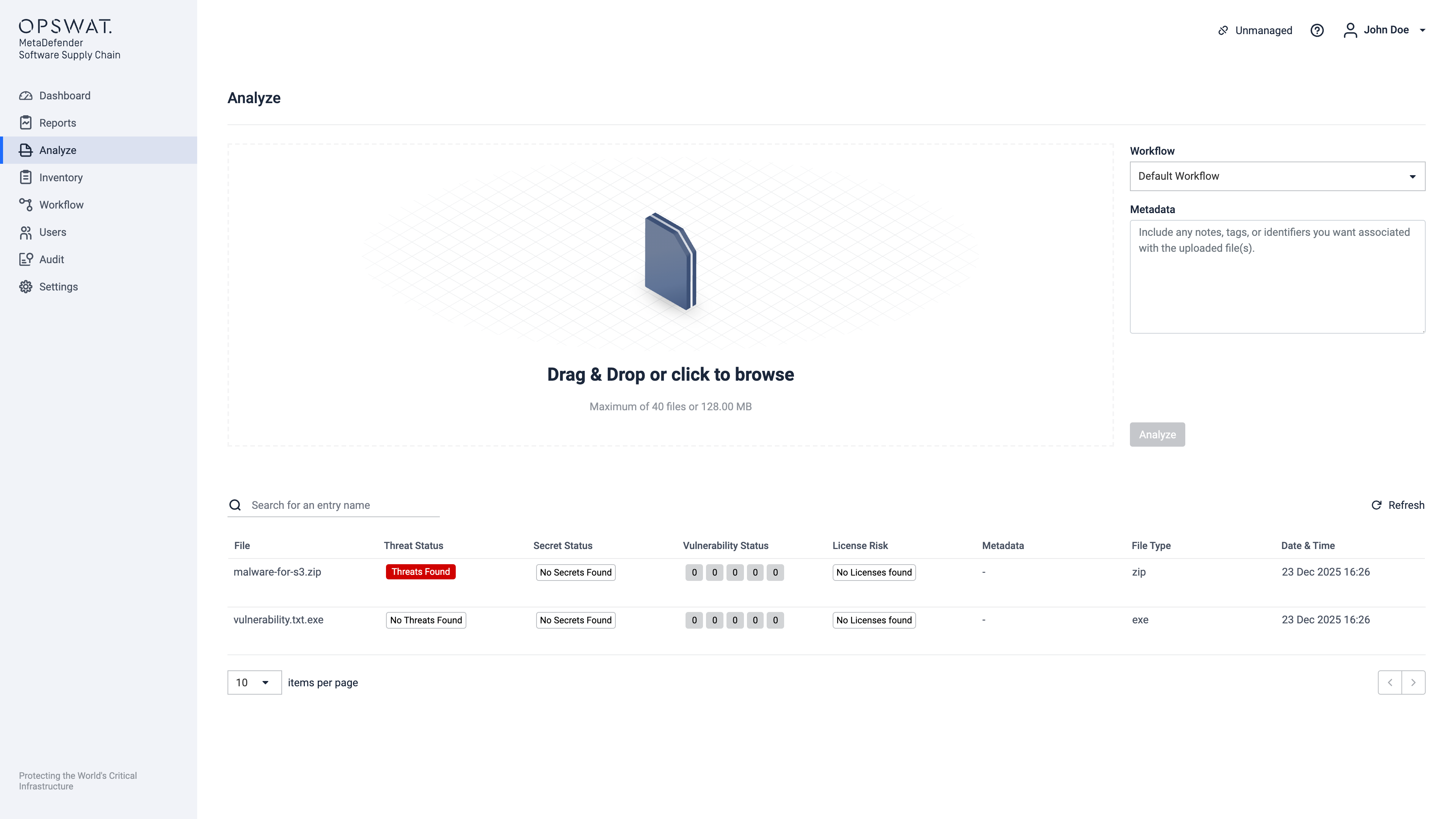 You can scan your files by dragging and dropping them, or by clicking the drag-and-drop area to browse and select files from your computer.