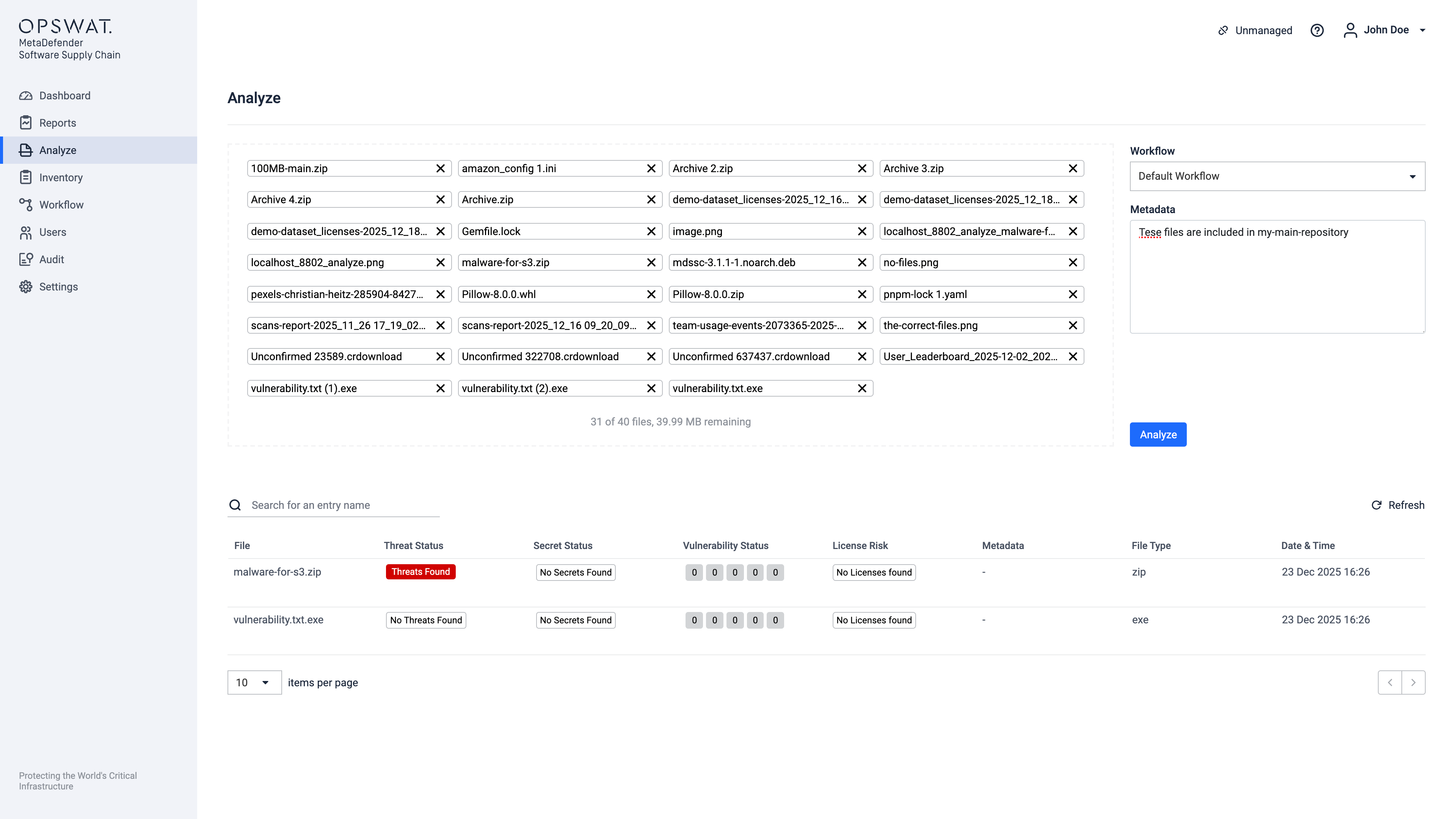 In the Analyze page you will be able to scan your files directly.