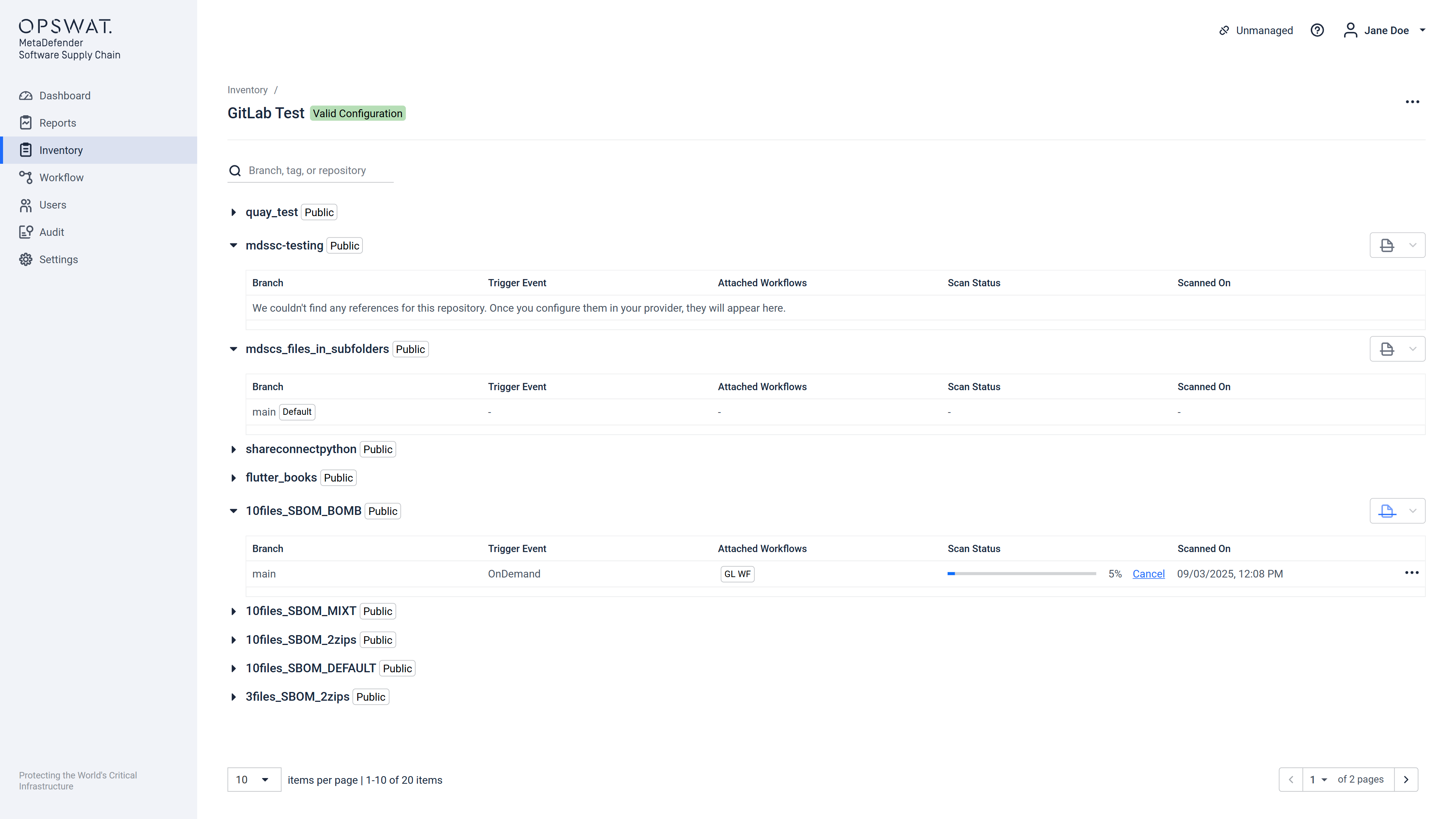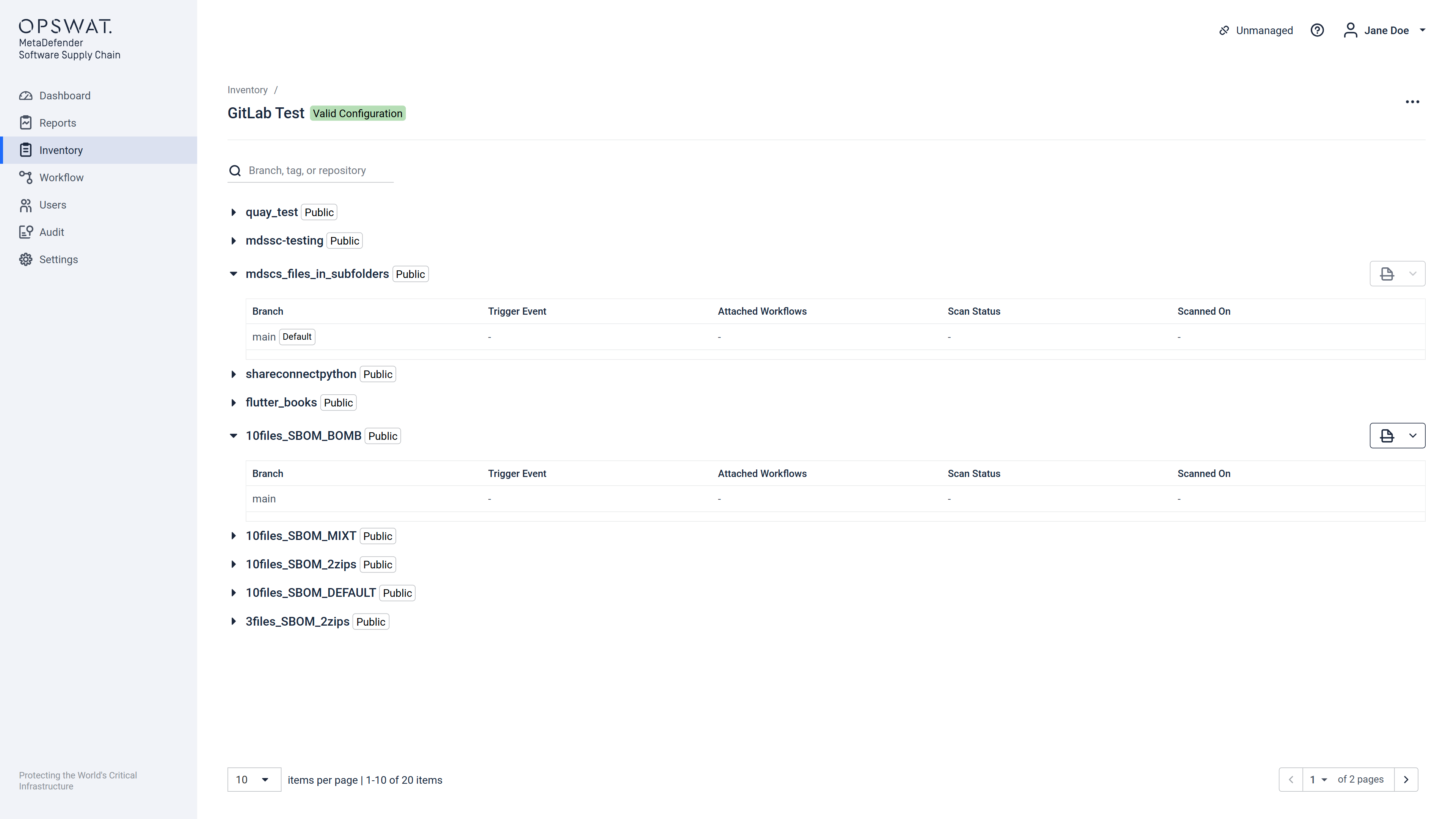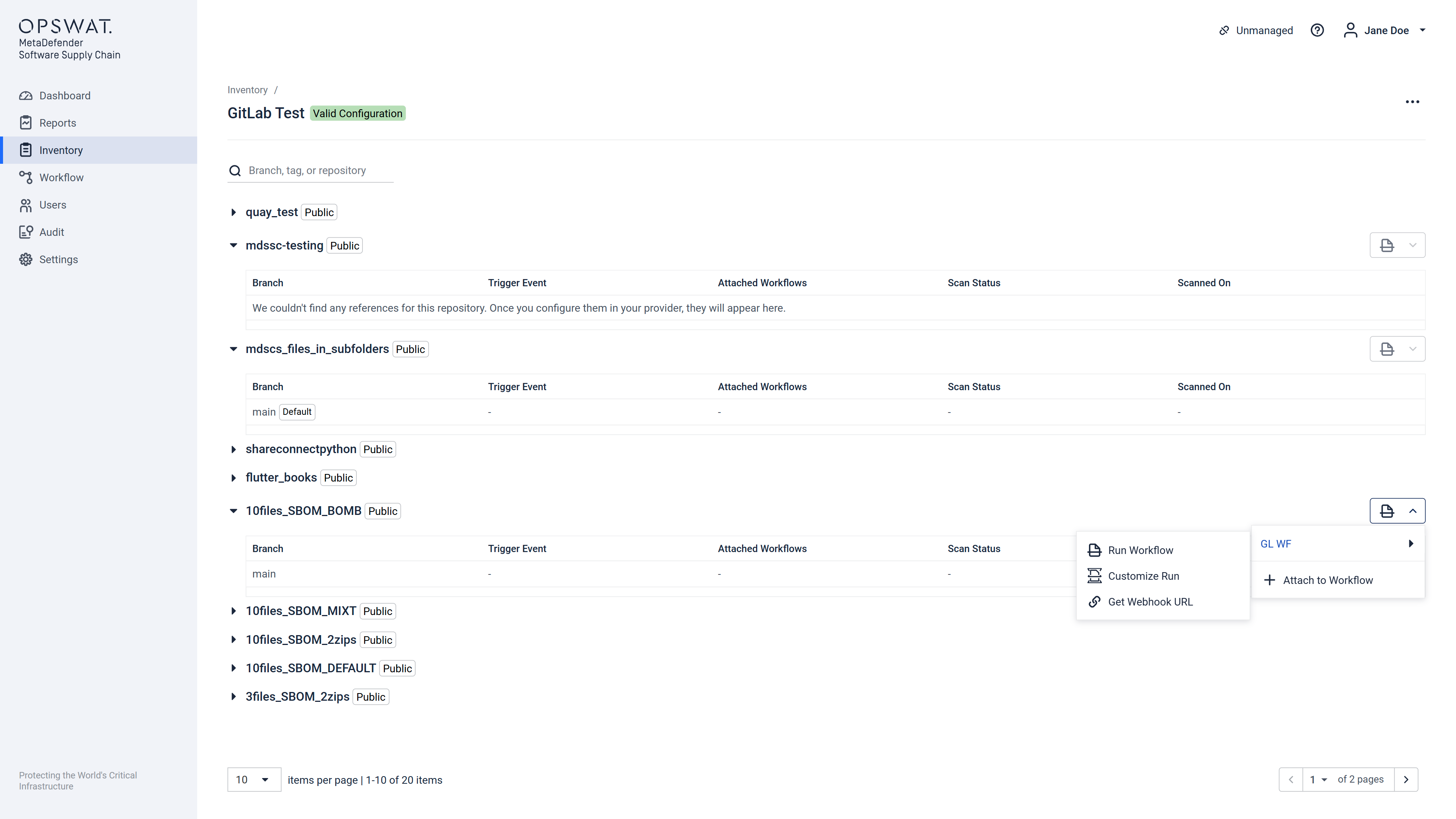 - Click the Scan dropdown to view available workflows for the selected repository or image.