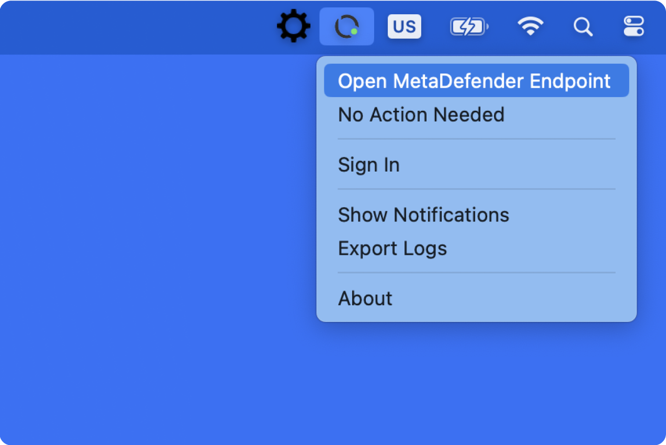 )MetaDefender Endpoint icon in the system. - The MetaDefender Endpoint will launch the user interface (UI) after installation is complete.