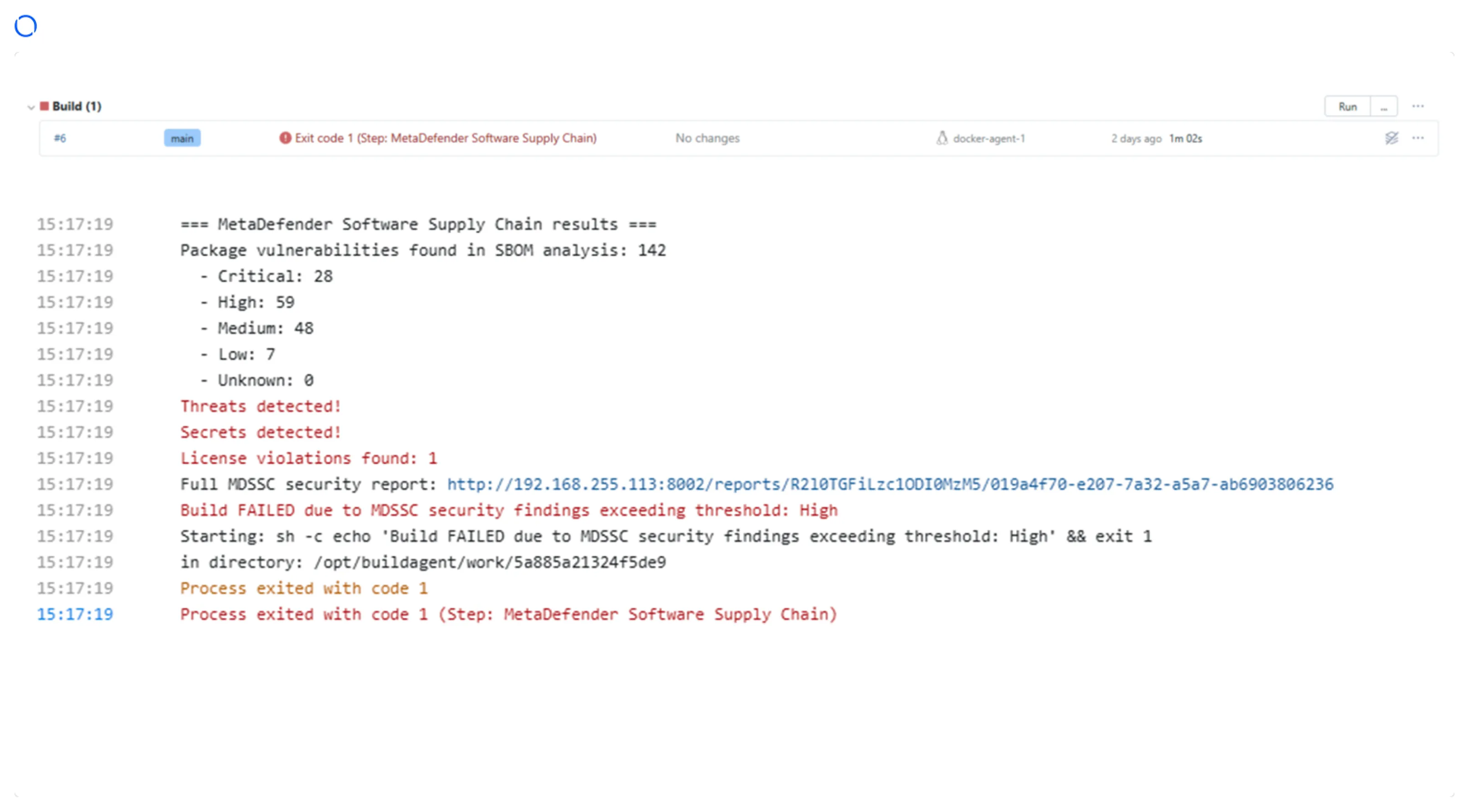 Software development and DevOps teams can automate threat detection across their software supply chain. OPSWAT MetaDefender Software Supply Chain for TeamCity plugin checks each build for malicious packages, exposed secrets, unverified dependencies, and other risks before they move further down the pipeline.