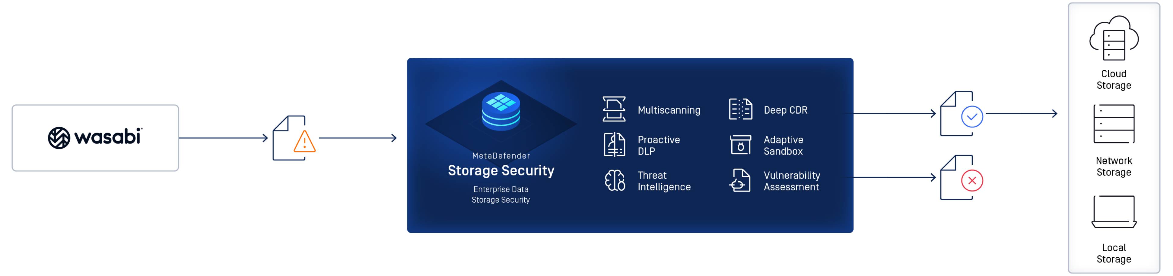 MetaDefender Storage Security integration with Wasabi seamlessly improves organizations’ operational efficiency and security posture with the following benefits: