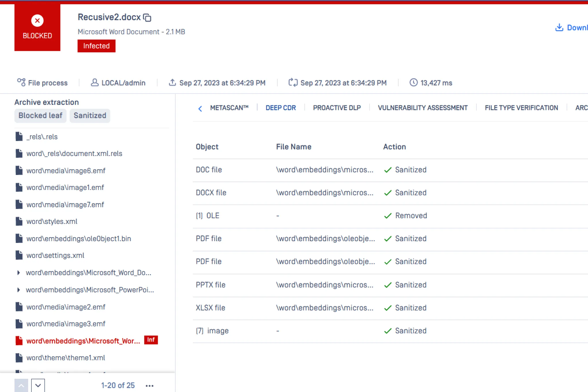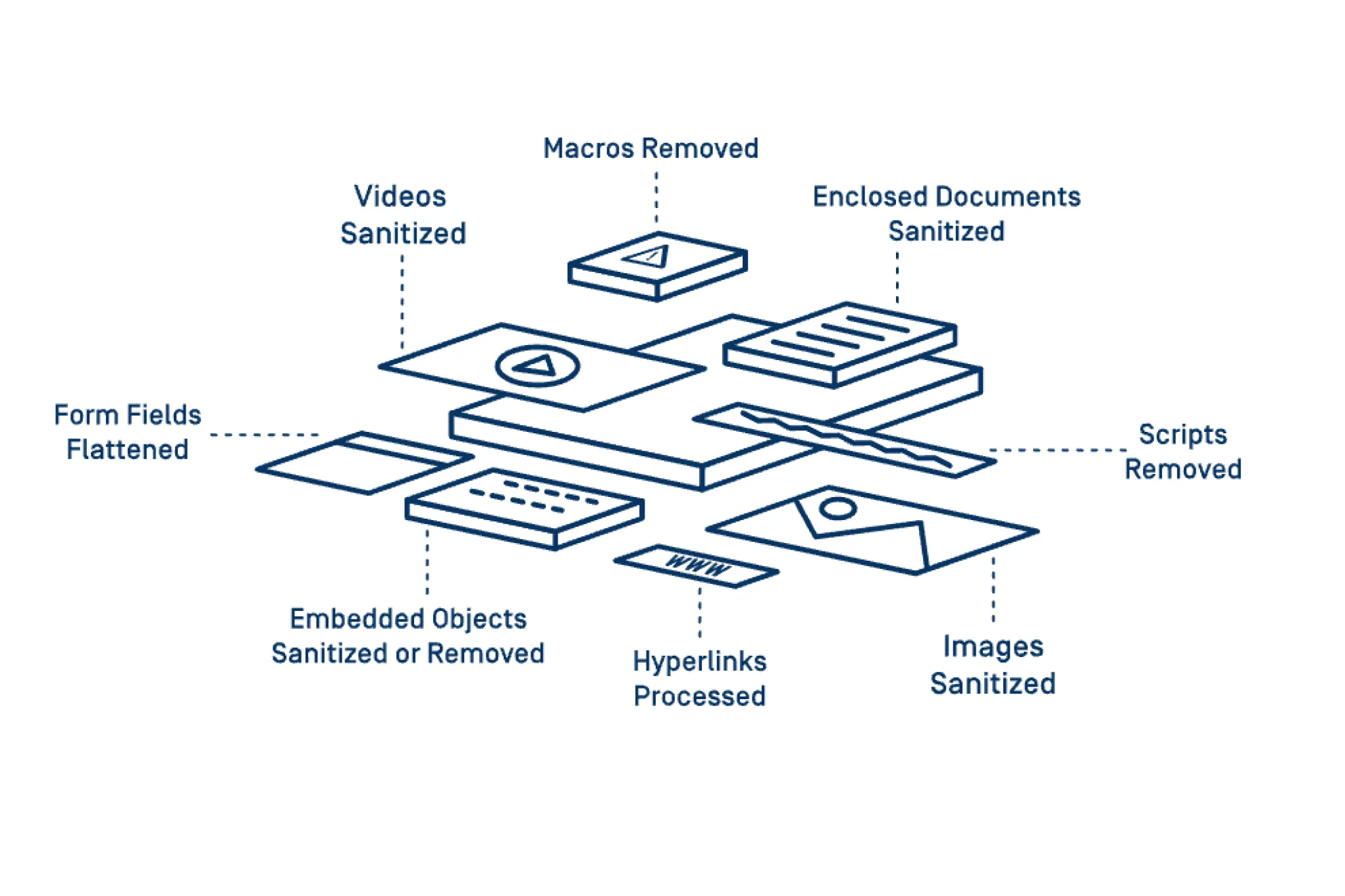 MetaDefender Deep Content Disarm and Reconstruction (Deep CDR) technology protects from known and unknown file-borne threats by sanitizing and reconstructing files. Any possible embedded threats are neutralized while maintaining full usability with safe content.