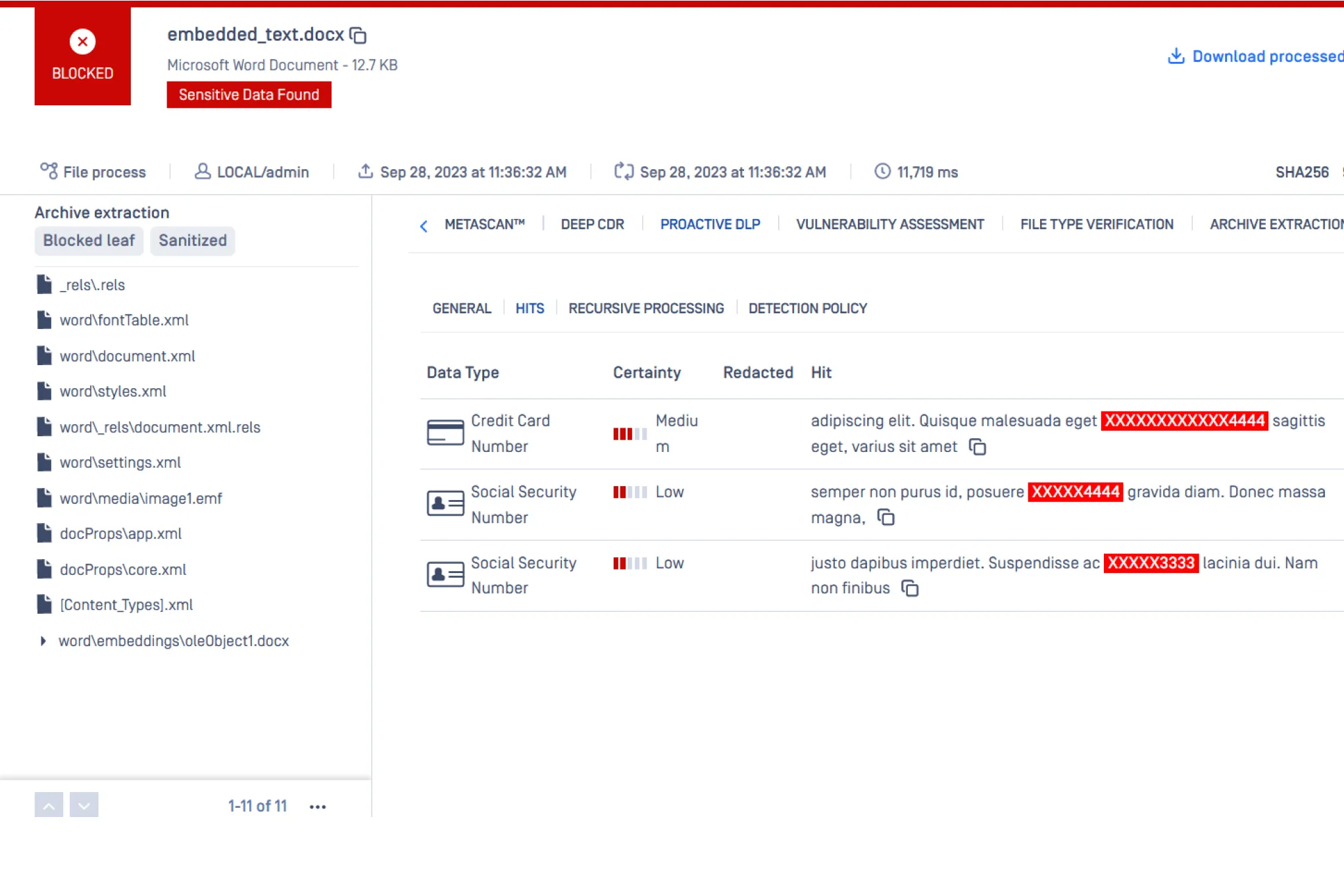MetaDefender Core prevents malicious file uploads on web applications that bypass sandboxes and other detection-based security solutions. It also helps protect confidential data, minimize data breaches, and prevent privacy violations with Proactive DLP.