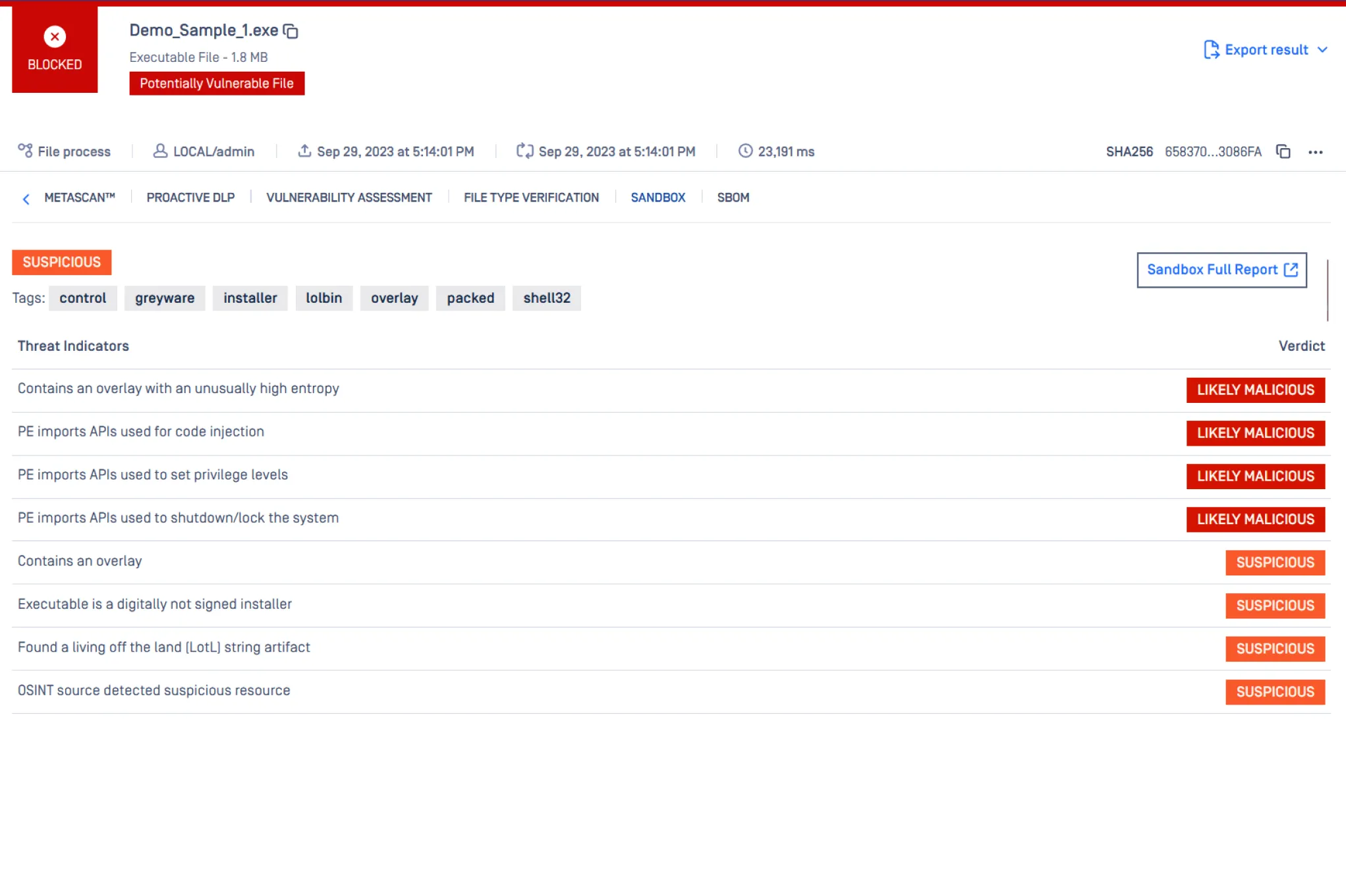 - Minimized false positives/negatives - Leverage advanced analyses conducted by malware analysts and reverse engineering experts for faster verdicts on suspicious files.