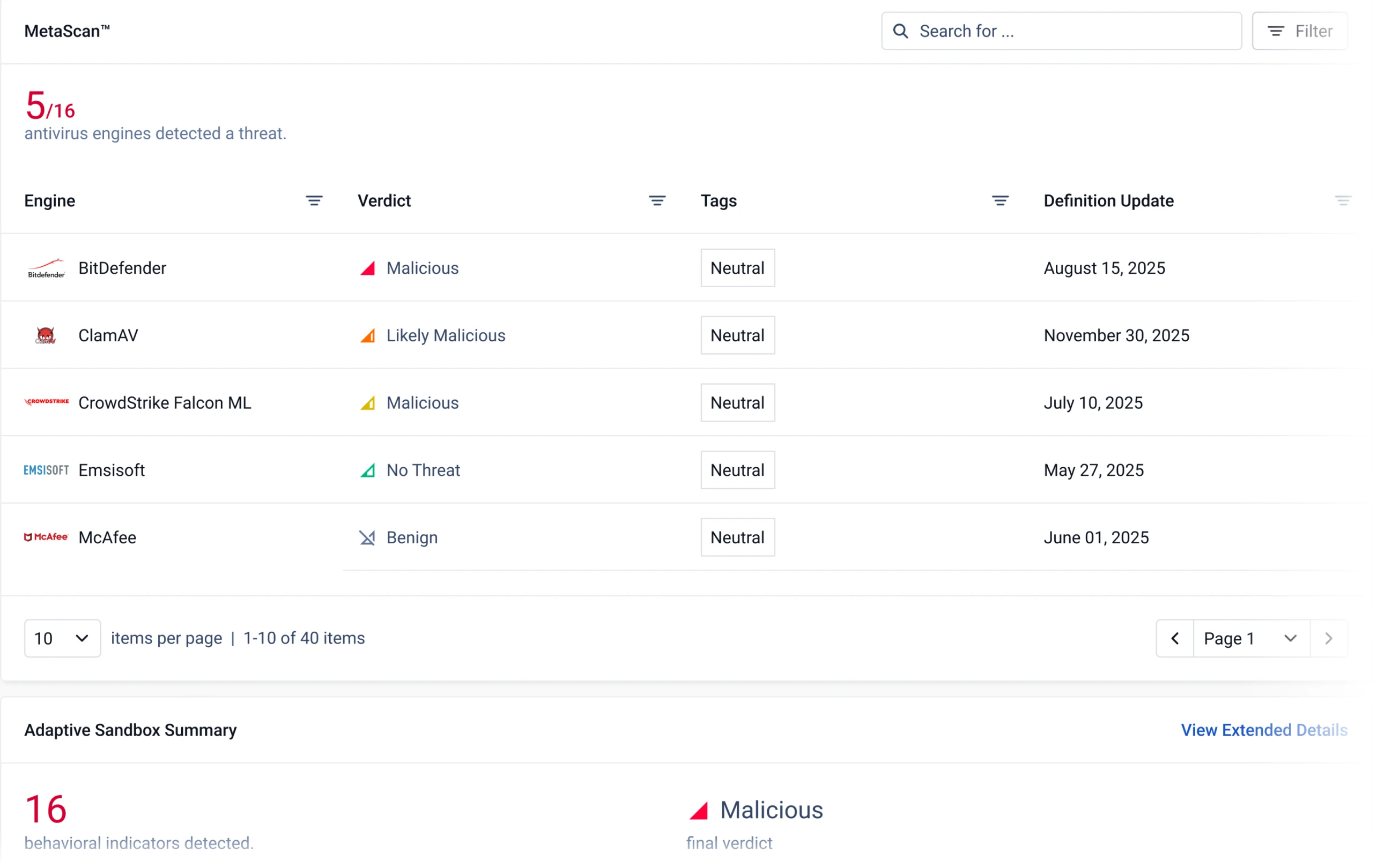 Scan files with 20+ industry-leading anti-malware engines and achieve over 99% detection rates.