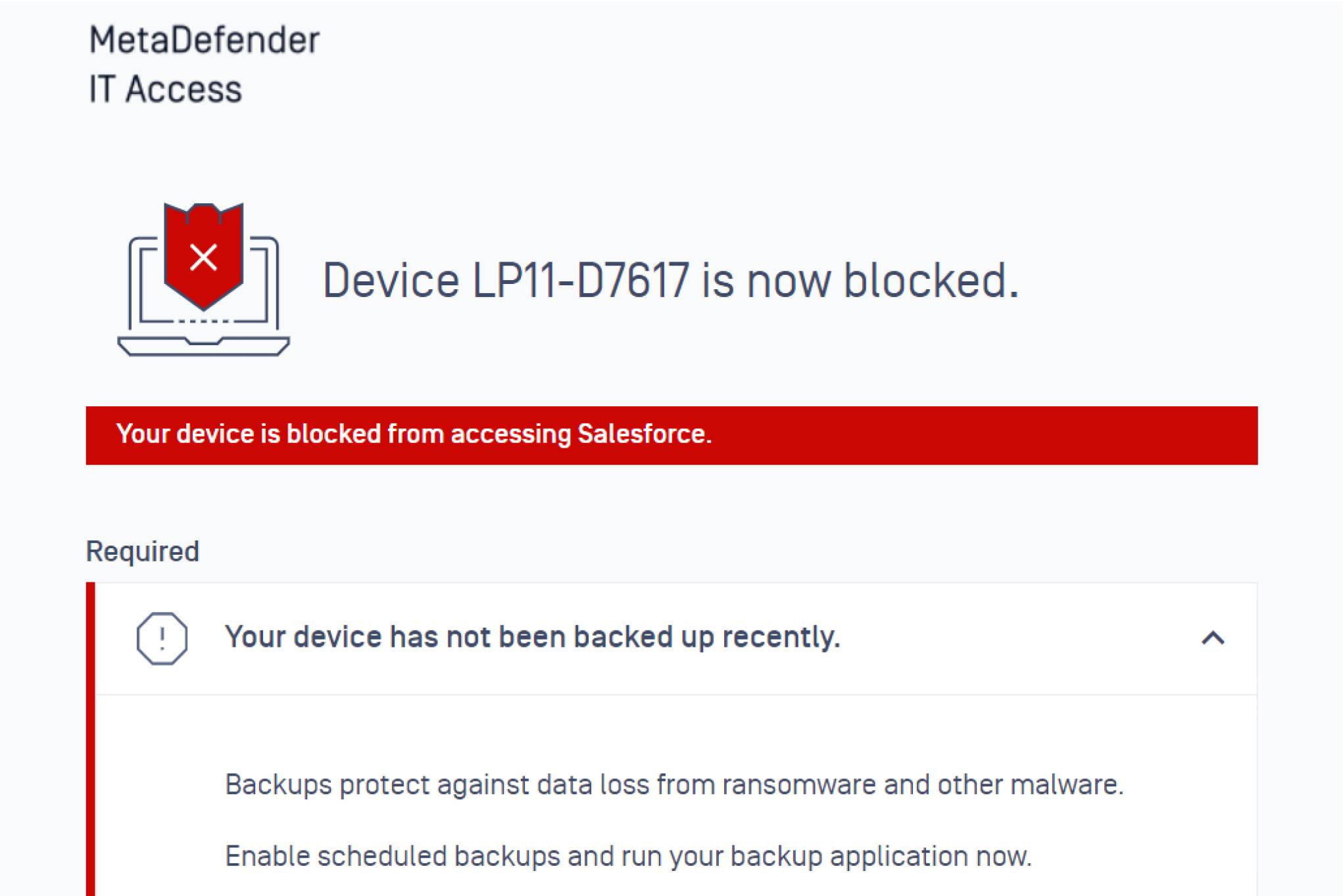 Using MetaDefender’s file-based vulnerability assessment technology, MetaDefender Access can check for vulnerabilities in installed applications and block access for vulnerable devices as specified in the configured policies.