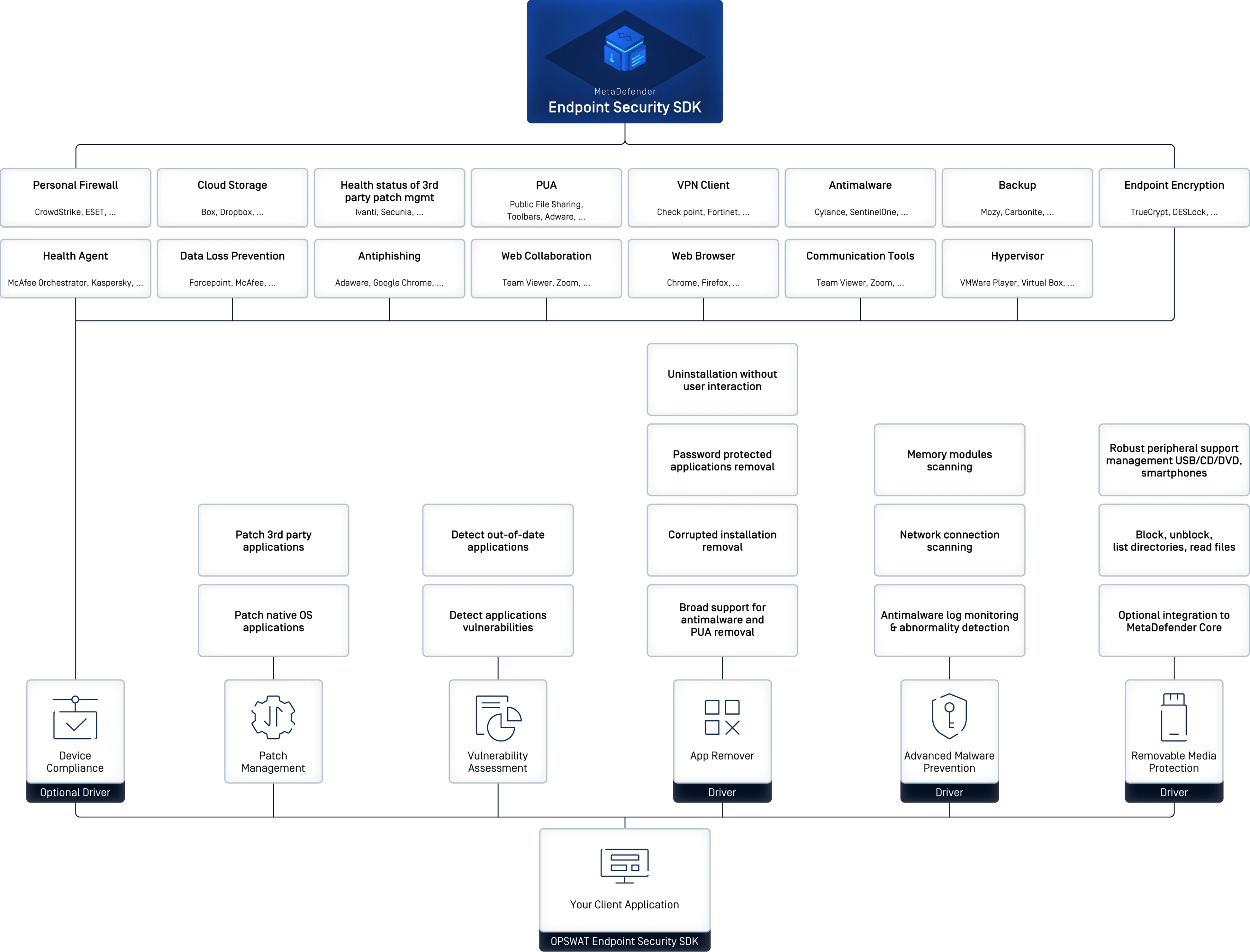 The MetaDefender Endpoint Security SDK (formerly known as OESIS) is a cross-platform, modular framework that enables developers and technology vendors to integrate advanced endpoint protection capabilities—quickly and efficiently—into their products.