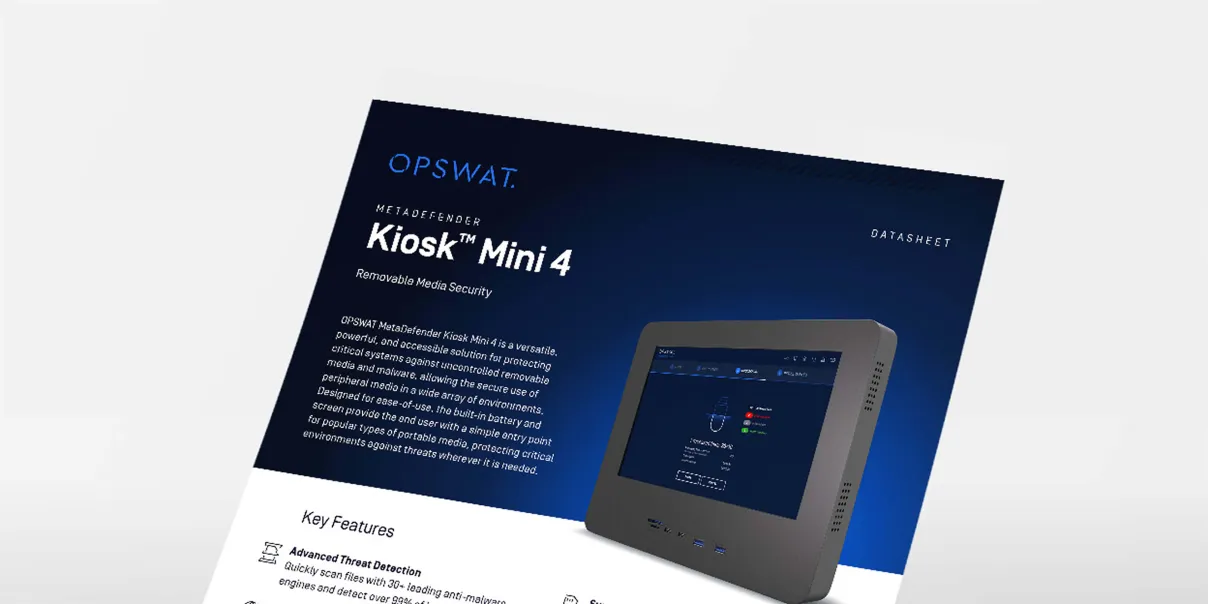 OPSWAT MetaDefender Kiosk Mini is a versatile, powerful, and accessible solution for protecting critical systems against uncontrolled removable media and malware.