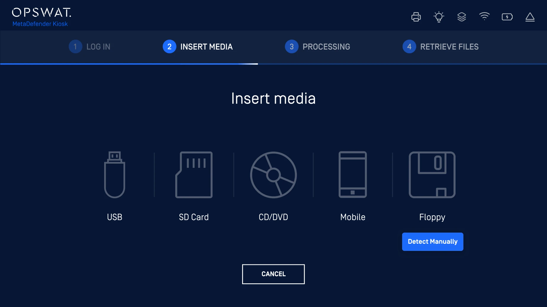 MetaDefender Kiosk supports most common portable media types, including floppy drives, with a variety of built-in media readers on the front of the kiosk.