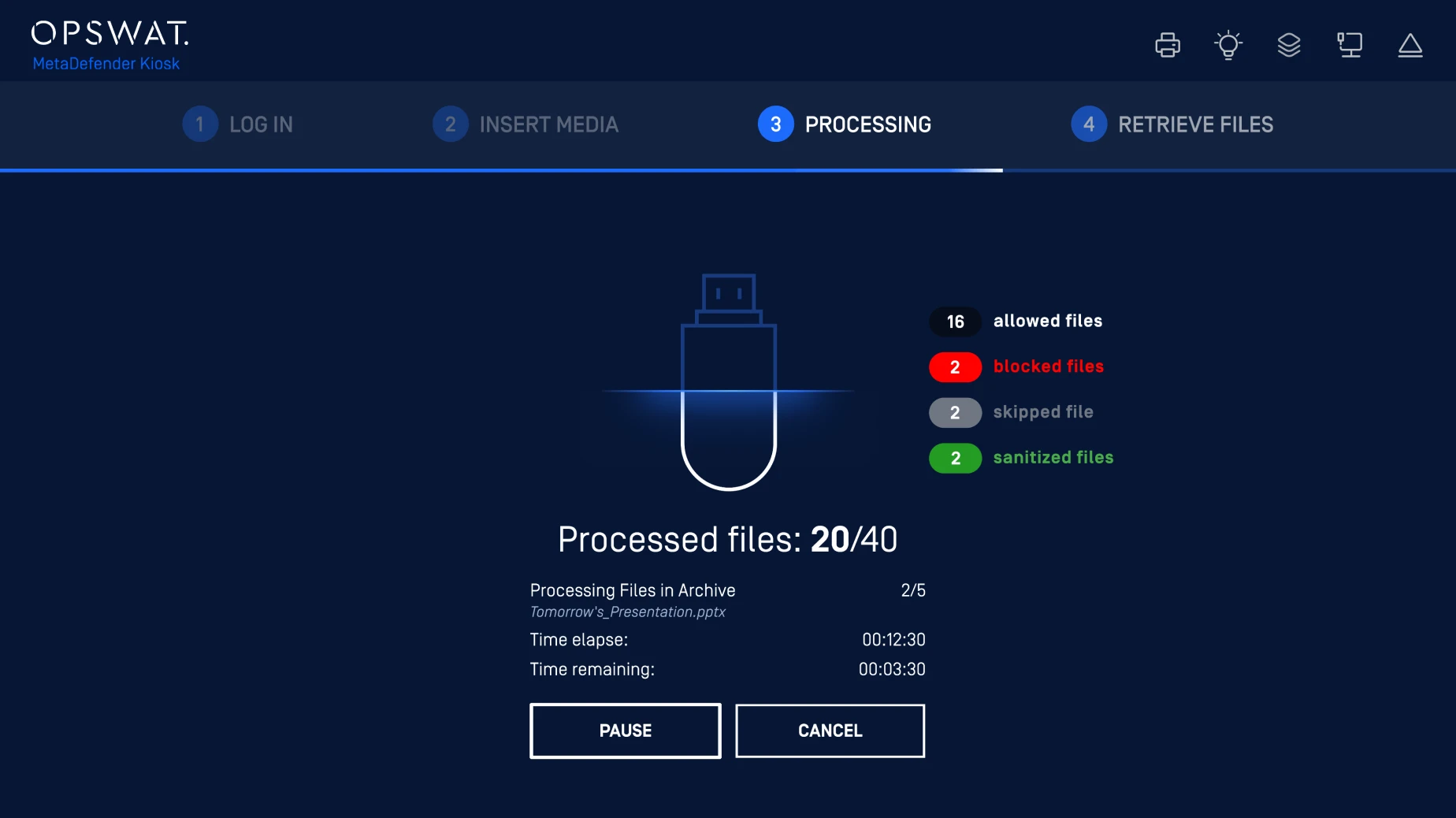With our multiscanning technology powered by up to 30+ anti-malware engines, threat detection levels can exceed 99%. MetaDefender Kiosk leverages this to improve detection rates, reduce outbreak exposure times, and avoid exposures caused by the potential limitations of a single vendor from any attack that can originate via weaponized removable media.