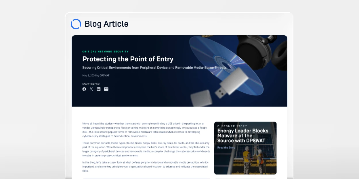 OPSWAT’s proven, globally trusted, and award-winning technology prevents removable and peripheral media-borne threats from entering critical IT and OT environments.