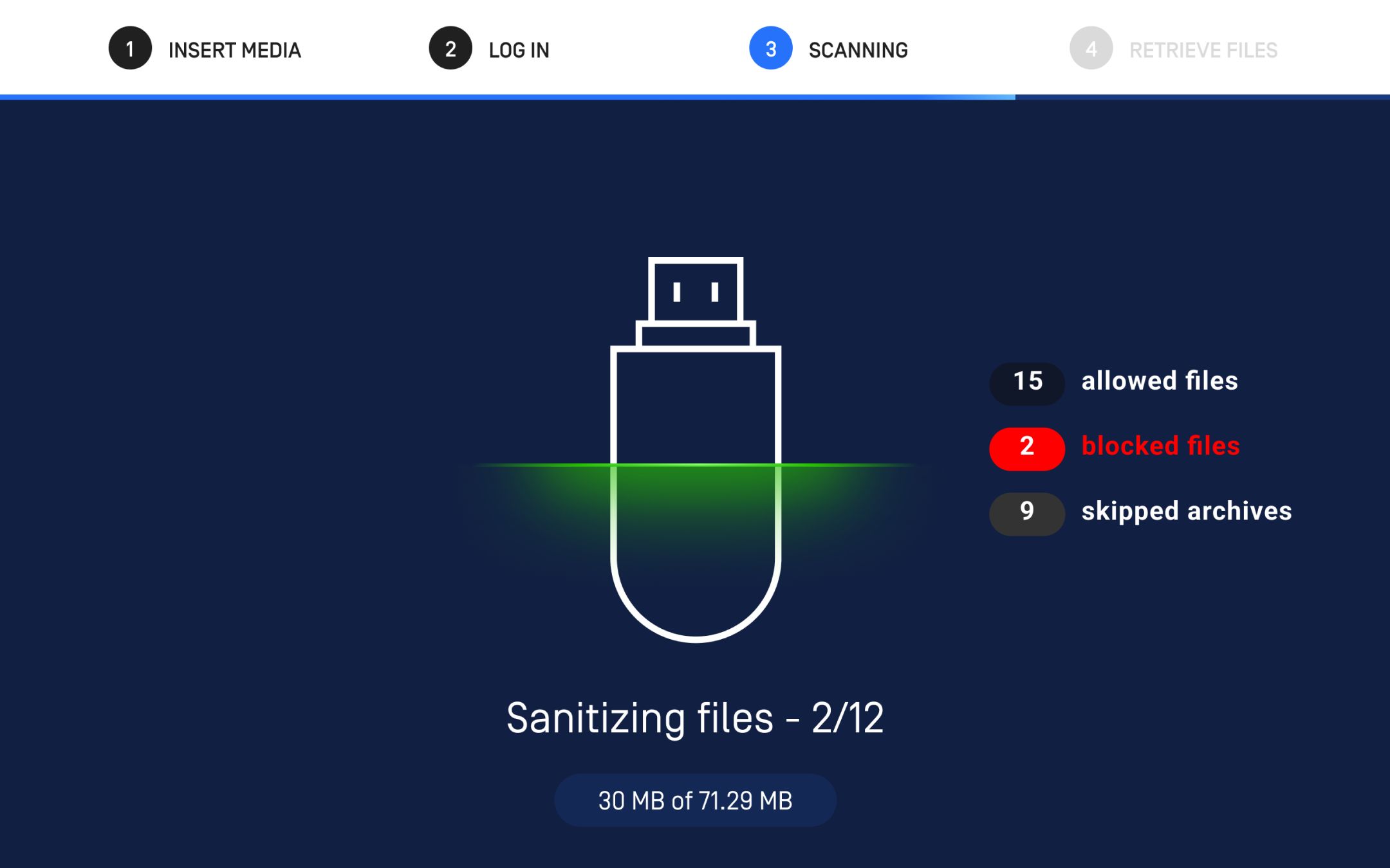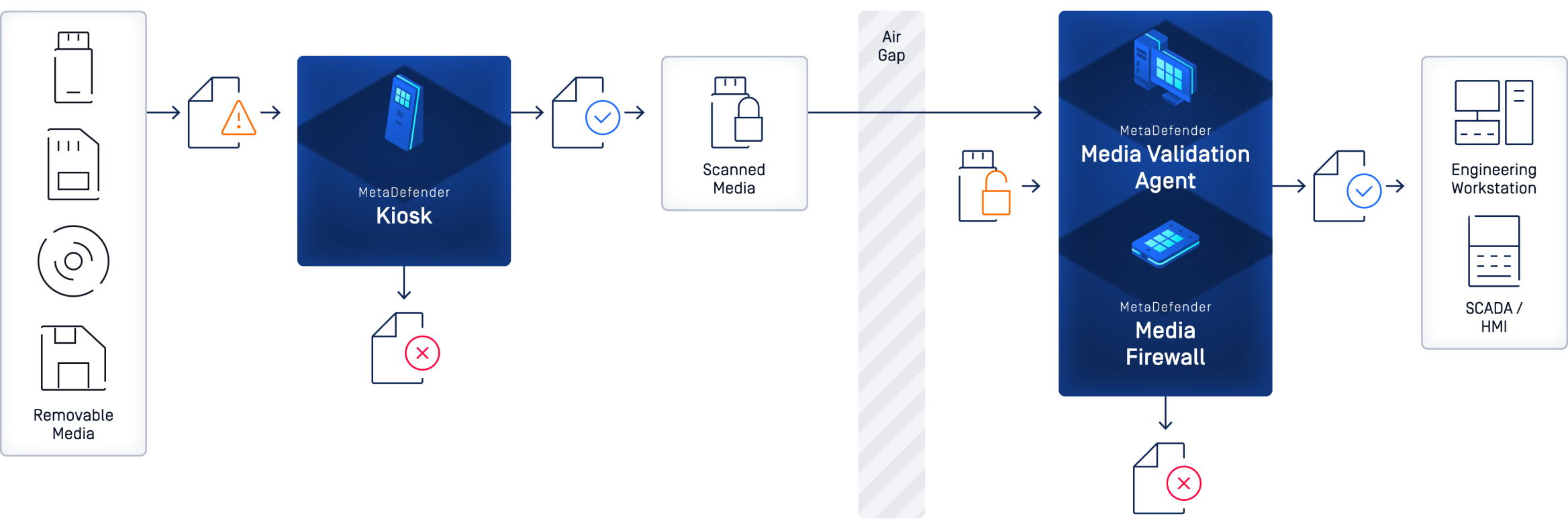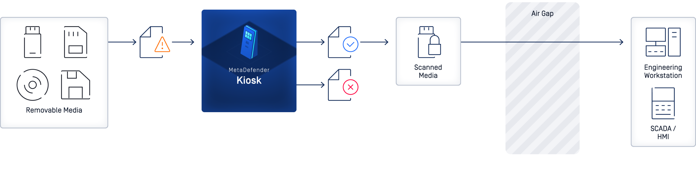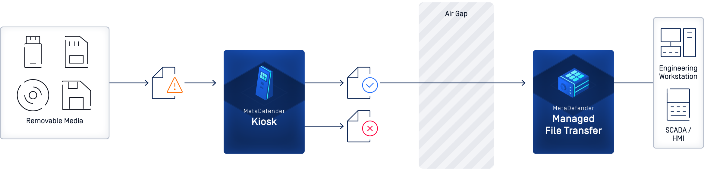 We have multiple recommended deployment options to scan removable media and remediate malicious content before they get into air-gapped and isolated secure networks.