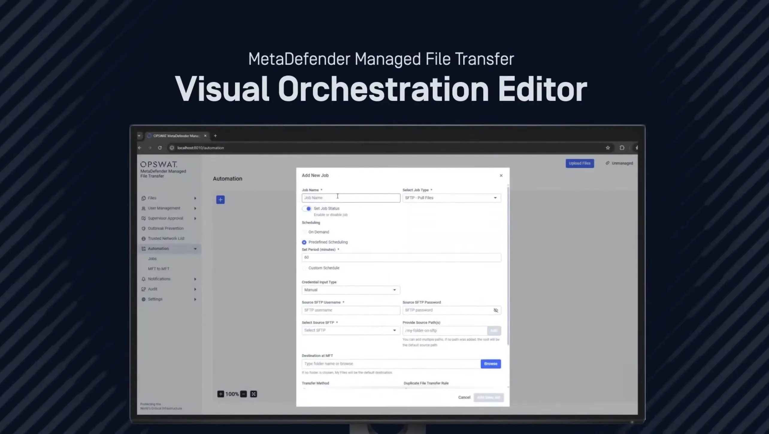 Yes. MetaDefender Managed File Transfer (MFT) supports scheduled jobs, logic-based routing, metadata-driven transfers, and visual workflow orchestration.