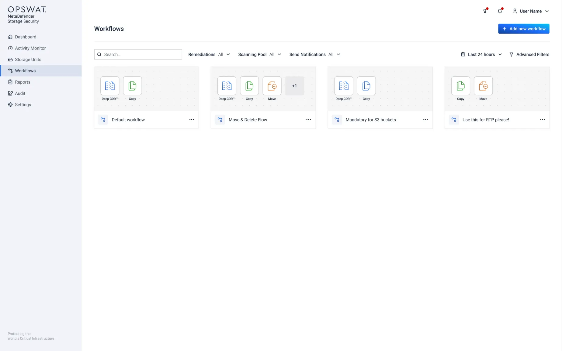 MetaDefender Storage Security seamlessly integrates into your enterprise workflows to secure sensitive data across cloud and on-premises storage environments. It delivers real-time and on-demand threat detection and prevention. Whether it scans for malware, sanitizes files with advanced Deep CDR™, or manages secure storage, MetaDefender Storage Security protects your enterprise data throughout its full lifecycle, without disruption or downtime.