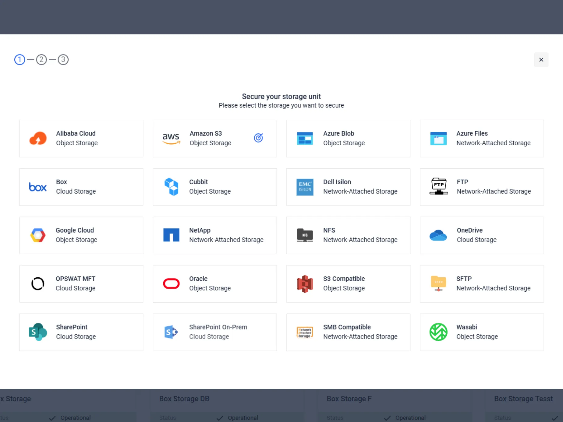 From local servers to cloud-based platforms, our solution ensures that enterprise data is fully protected against breaches, downtime, and compliance violations. It integrates seamlessly with leading storage and collaboration solutions like Amazon S3, Microsoft Azure, NetApp, Dell EMC, OneDrive, Box and any SMB/NFS/SFTP/FTP or S3-compatible storage.