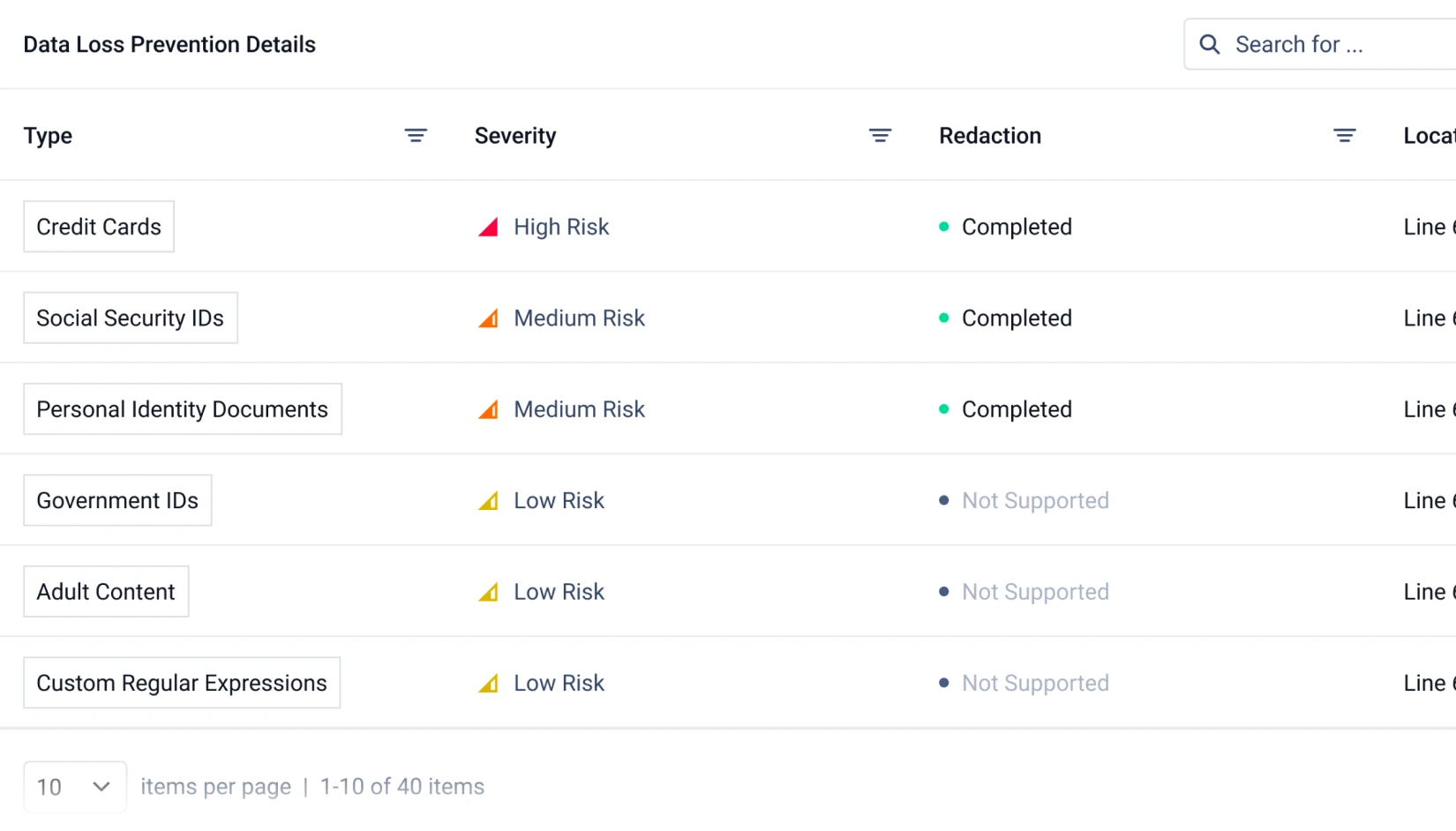 Detects and blocks sensitive data exfiltration while supporting regulatory frameworks such as PCI DSS, GDPR, HIPAA, ISO 27001, and NIST.