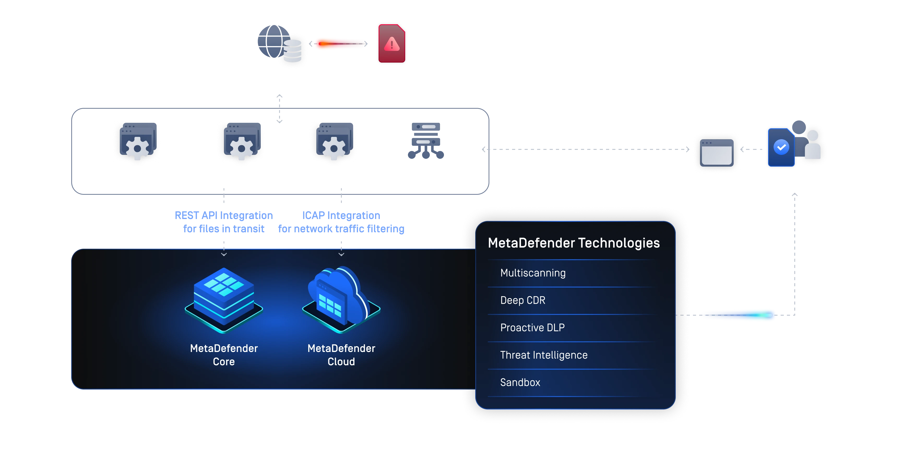Ensure malware-free downloads across your organization while maintaining efficient and speedy workflows. OPSWAT solutions fortify secure web gateways and enterprise browsers with high-efficiency, multi-layered technologies, as well as fine-tuned policy controls filtering internet-bound traffic that adapt to your compliance needs.