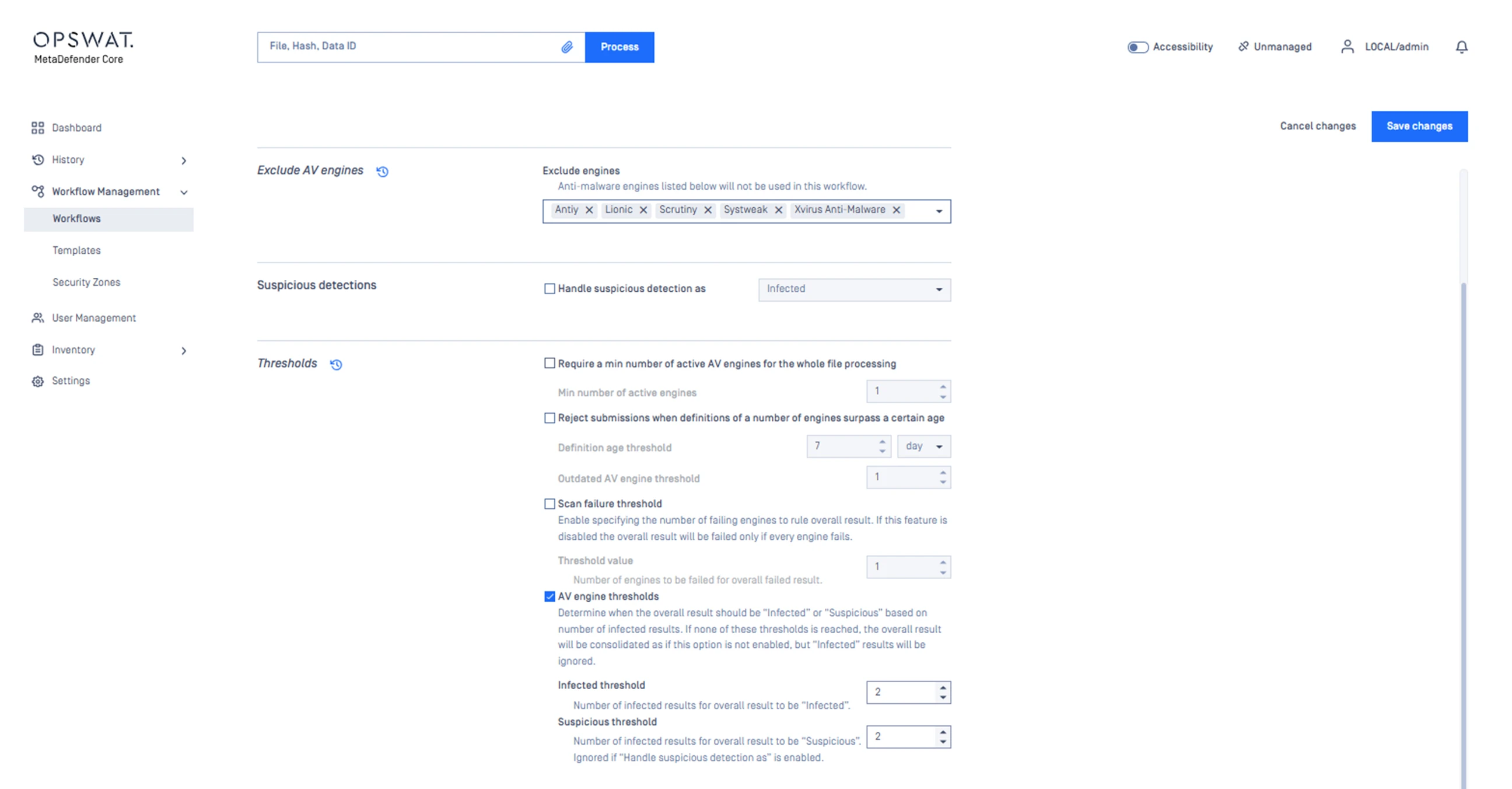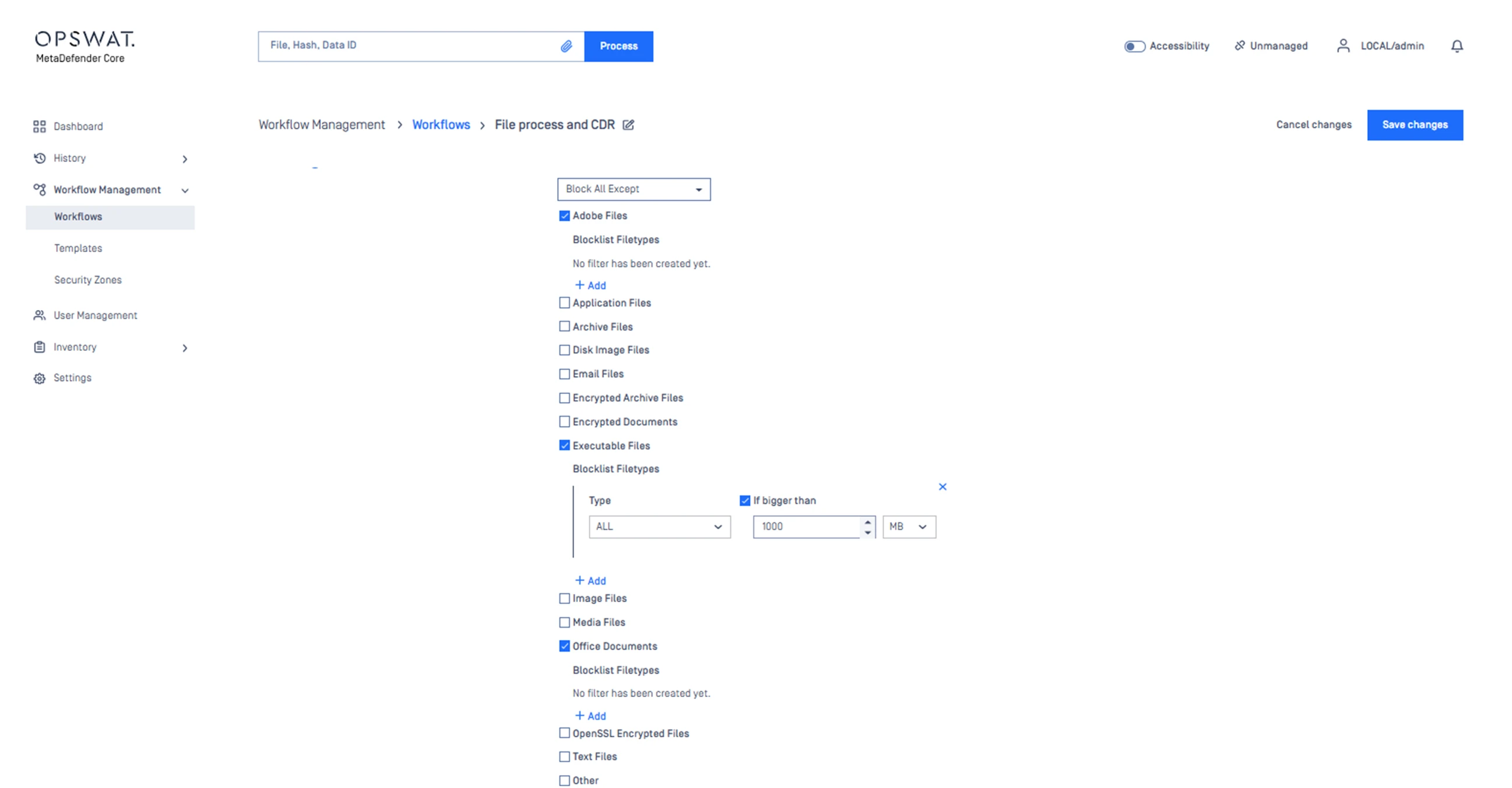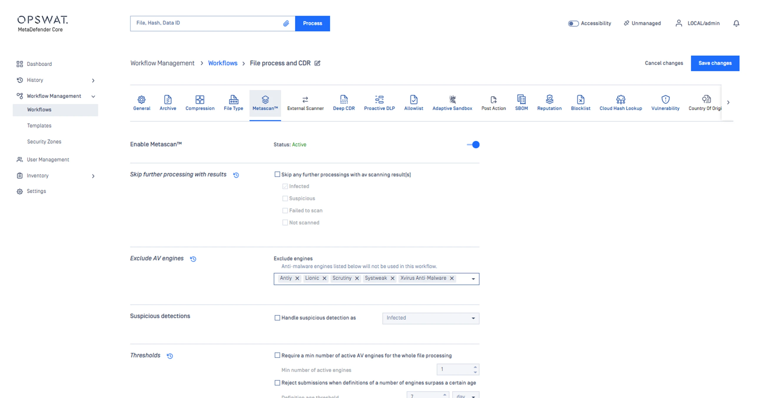 MetaDefender Workflow Engine gives security professionals the flexibility to customize security policies, file processing, and administrative options to meet specific security requirements and service level performance commitments.