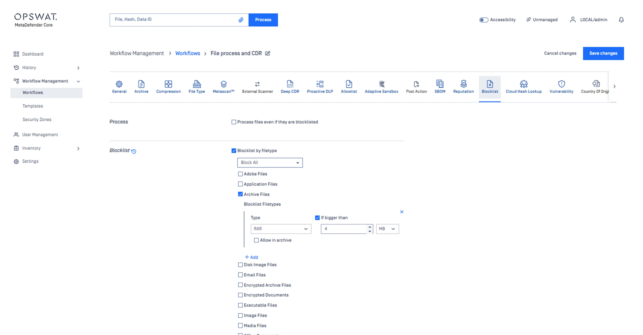 Define detection and protection workflows across Metascan Multiscanning, Deep CDR, SBOM, and Adaptive Sandbox to provide the appropriate level of security based on the source's trust level.