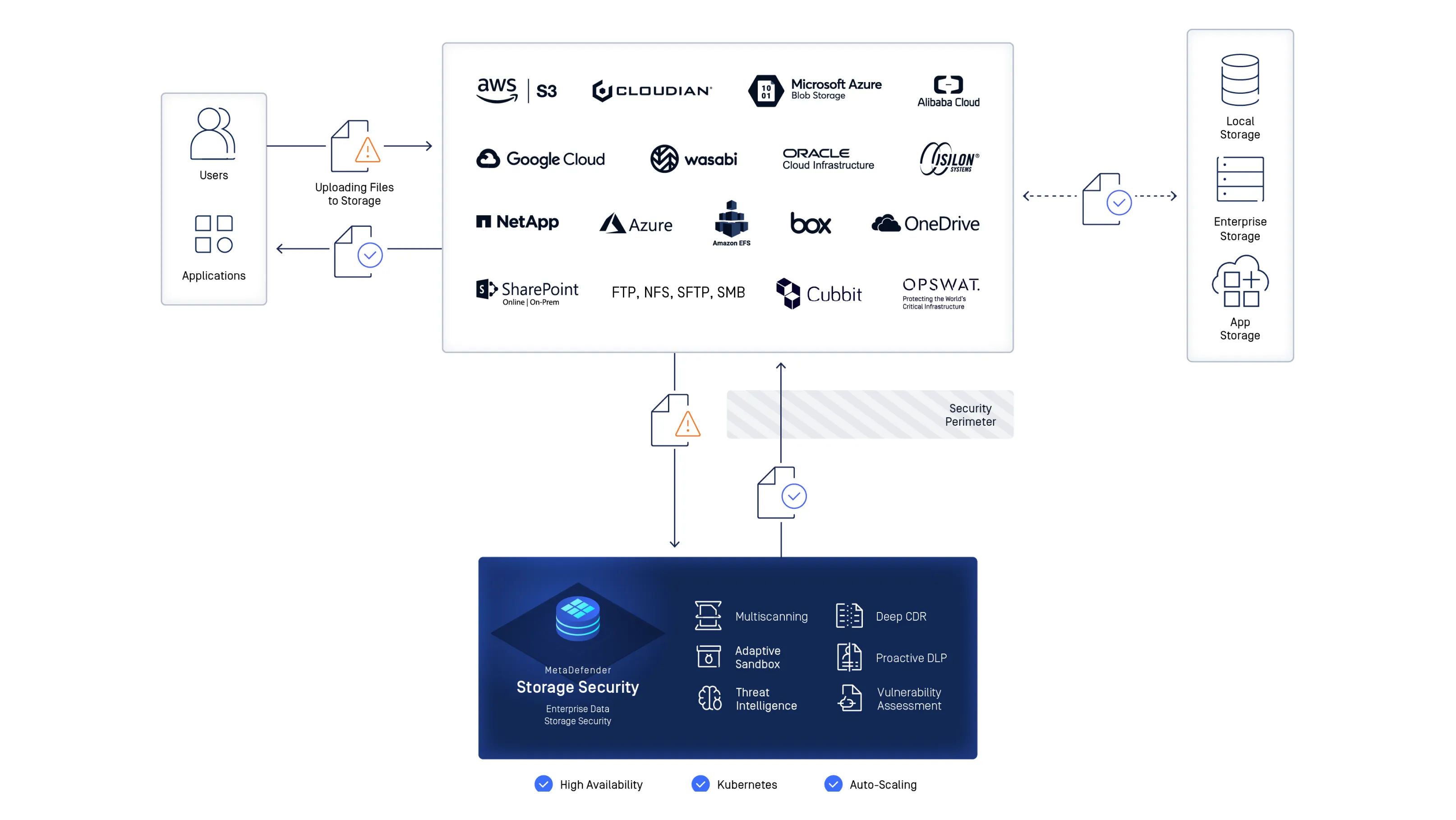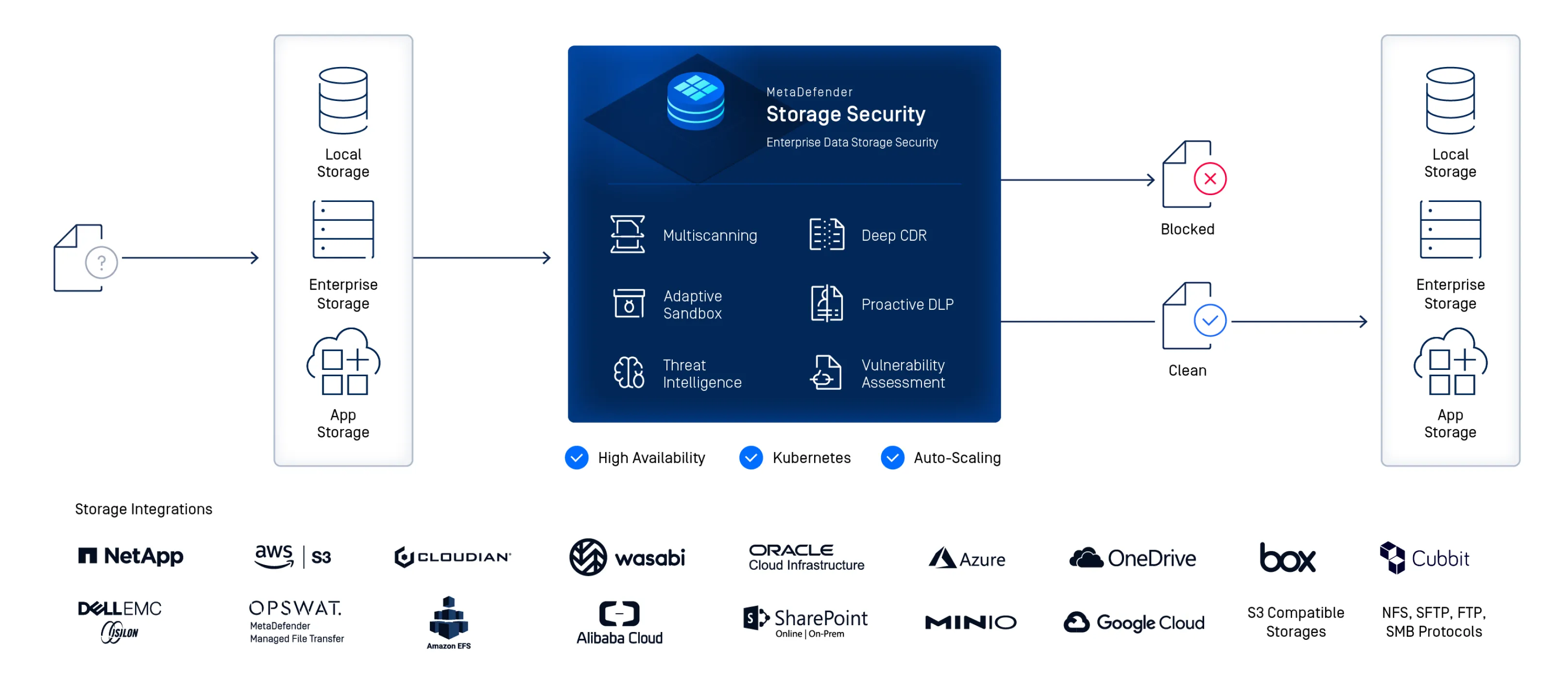 Deploy MetaDefender Storage Security across local, hybrid, or cloud-native storage environments for scalable protection. Benefit from continuous security with redundant and distributed architectures that minimize downtime and maintain service reliability.