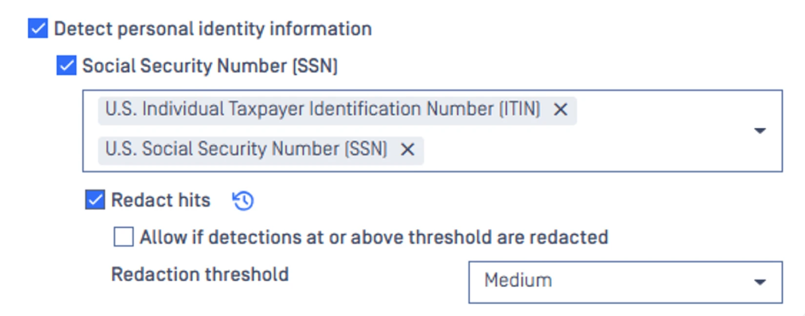 Easily redact sensitive data including financial info, personal identity, network and device info, secrets, regex, and metadata.