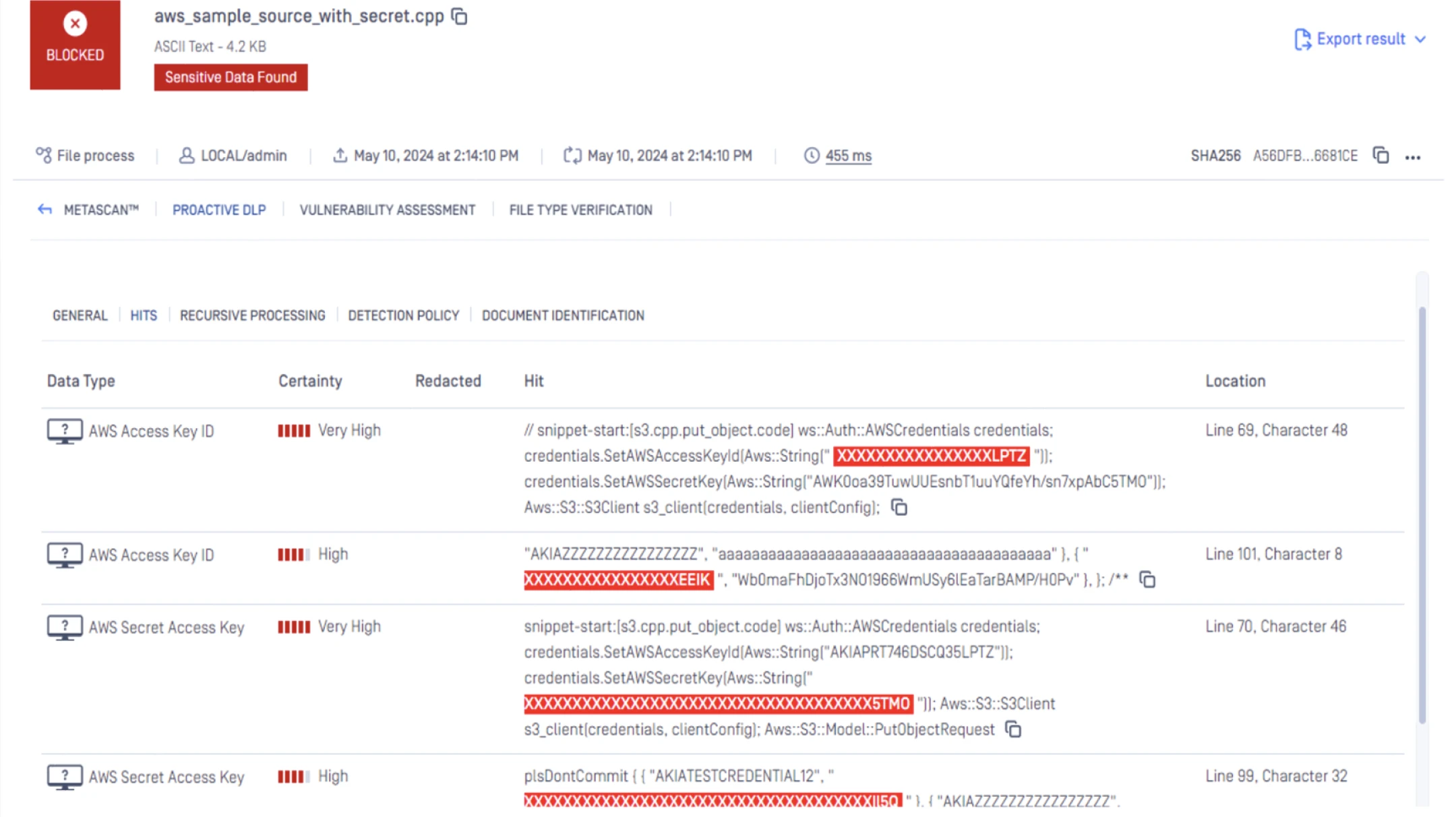 Secrets include API keys, passwords, authentication tokens, private keys, and configuration strings commonly embedded in code files, documents, and emails. When leaked, these can provide direct system access to attackers. Proactive DLP detects secrets using advanced pattern matching and machine learning, automatically redacting or blocking files that contain exposed credentials, helping prevent unauthorized access, privilege escalation, and supply chain compromise.