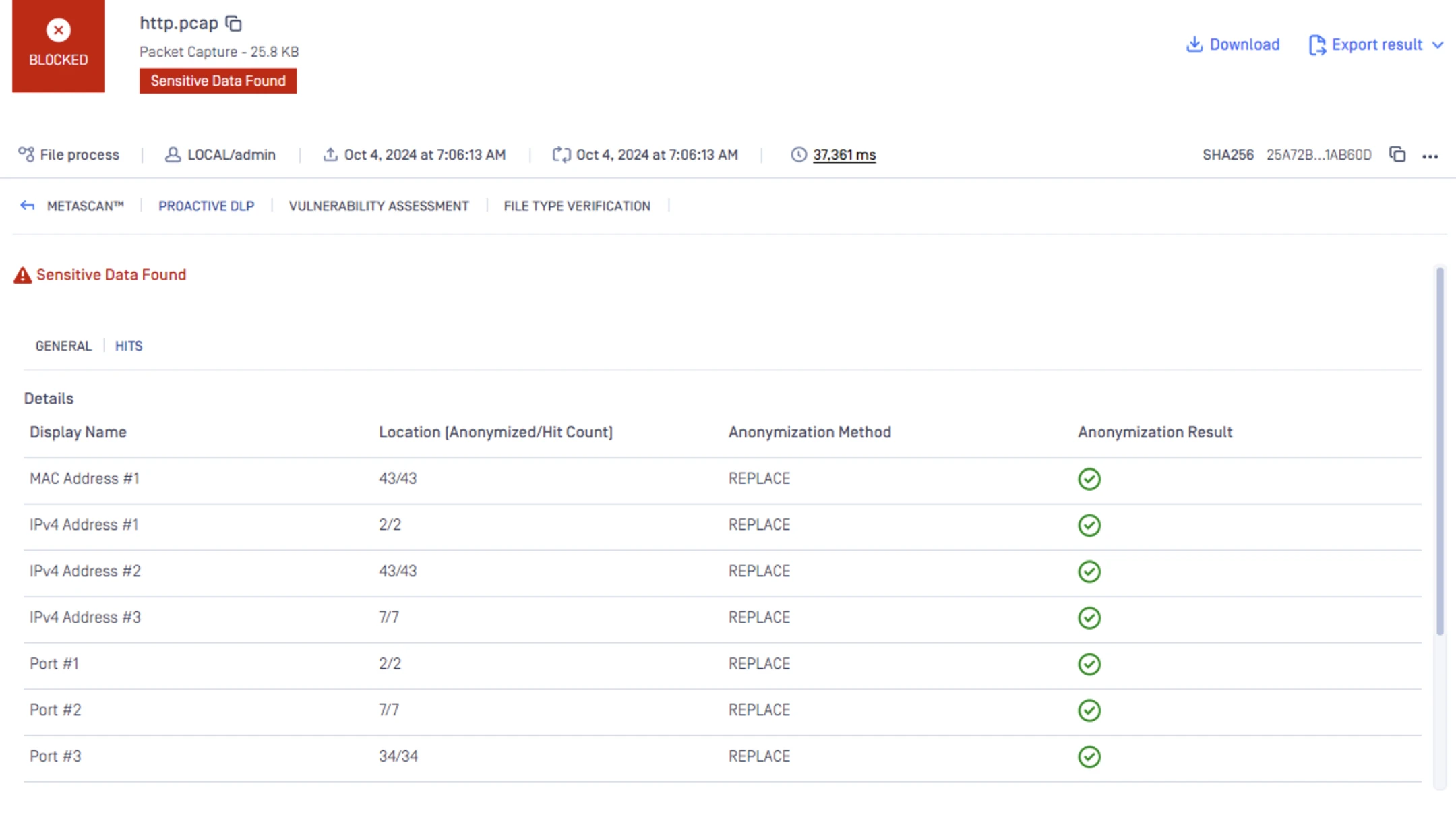 Automatically identifies and categorizes sensitive data, assigning clear verdicts such as Infected or Suspicious for faster response.