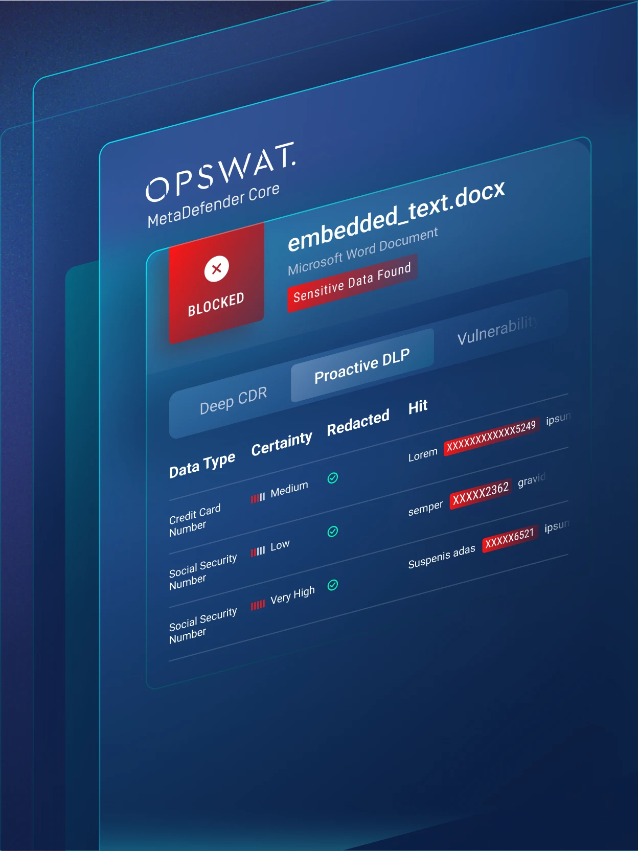 Intentional data leaks may involve deliberate sharing of confidential files, exfiltration attempts using disguised content, or manipulation of documents to bypass security controls. These high-risk scenarios can cause severe damage if not intercepted. Proactive DLP analyzes behavior, file content, and policy violations to identify suspicious patterns, enforce automated redaction or blocking, and stop malicious or policy-breaking file transfers before data leaves the organization