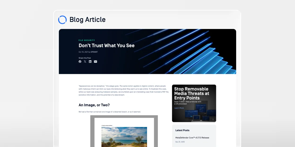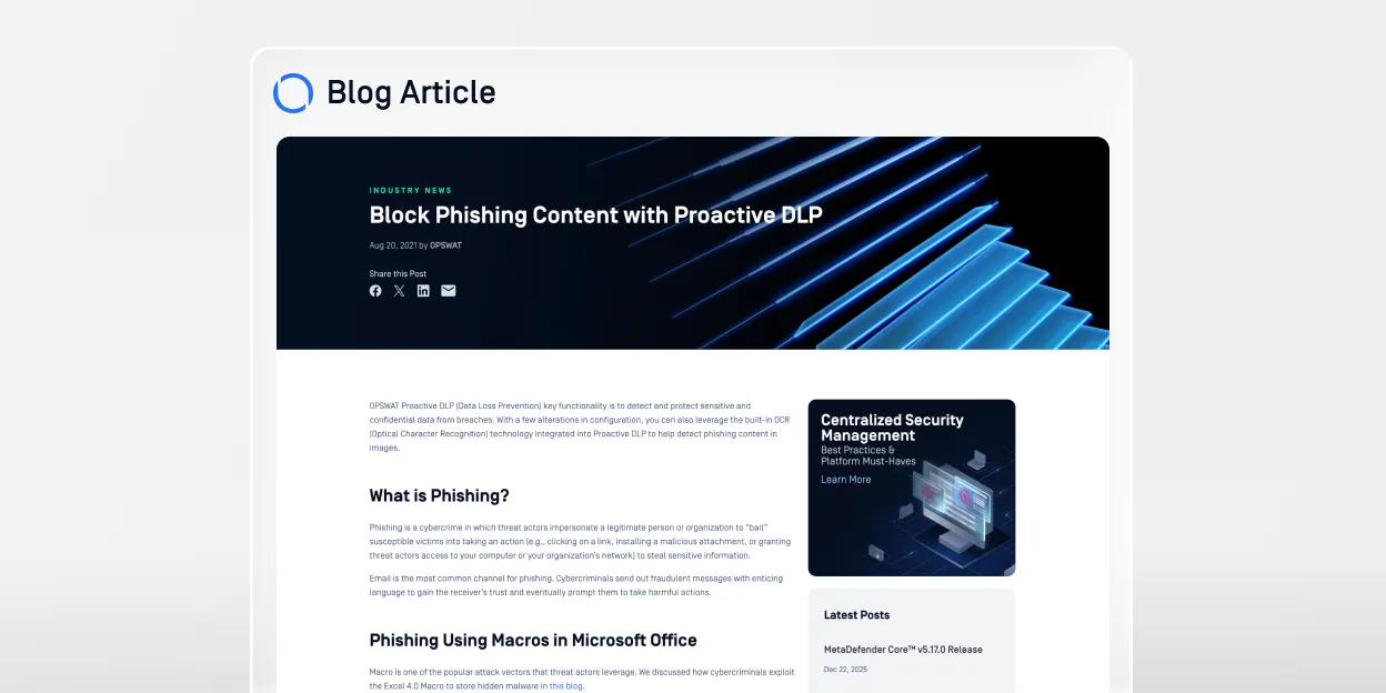 OPSWAT Proactive DLP can help organizations prevent sensitive and regulated data from leaving or entering the organization’s systems by content-checking files and emails before they are transferred. MetaDefender can search over 110+ file types for sensitive content, including Microsoft Office, PDF, CSV, HTML and image files.